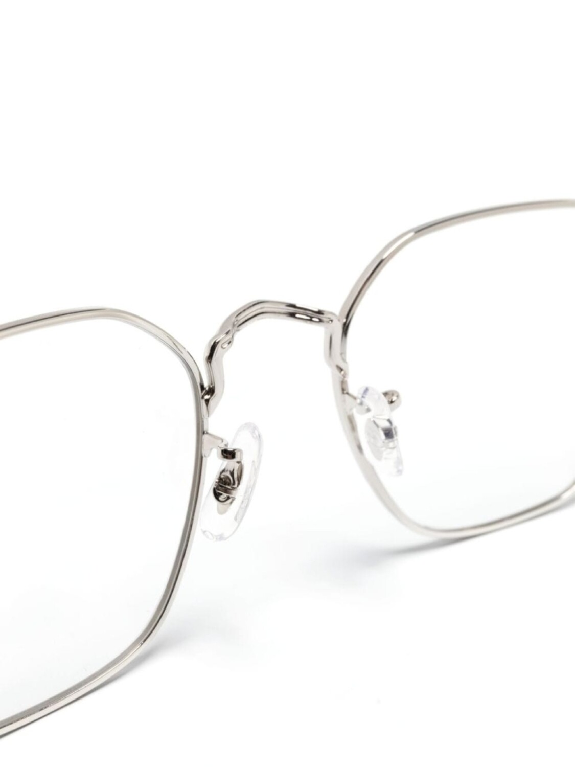 Серебристый, металлический каркас, прозрачные линзы, носоупоры, квадратная оправа, прямые дужки, дужки с закругленными концами, Обратите внимание, что на FARFETCH продаются оправы с линзами без диоптрий., В комплект входит защитный чехол для очков.