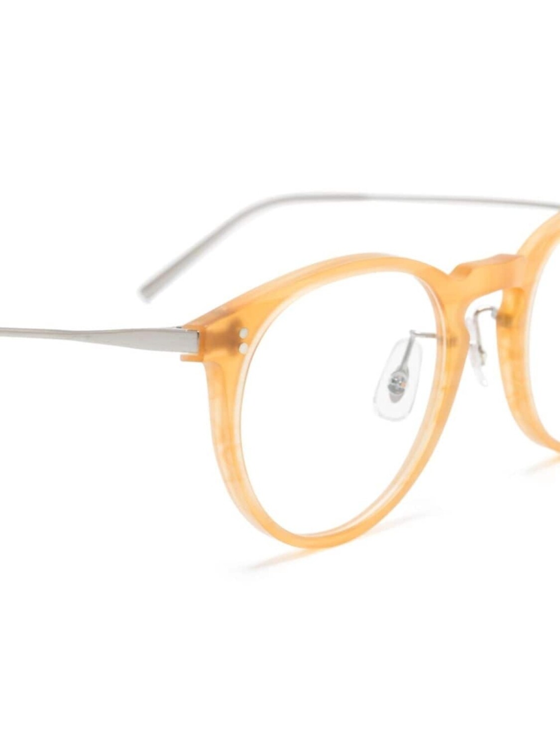 Желтый/серебристый, ацетат, круглая оправа, прозрачные линзы, носоупоры, прямые дужки с закругленными концами, В комплект входит защитный чехол для очков., Обратите внимание, что на FARFETCH продаются оправы с линзами без диоптрий.