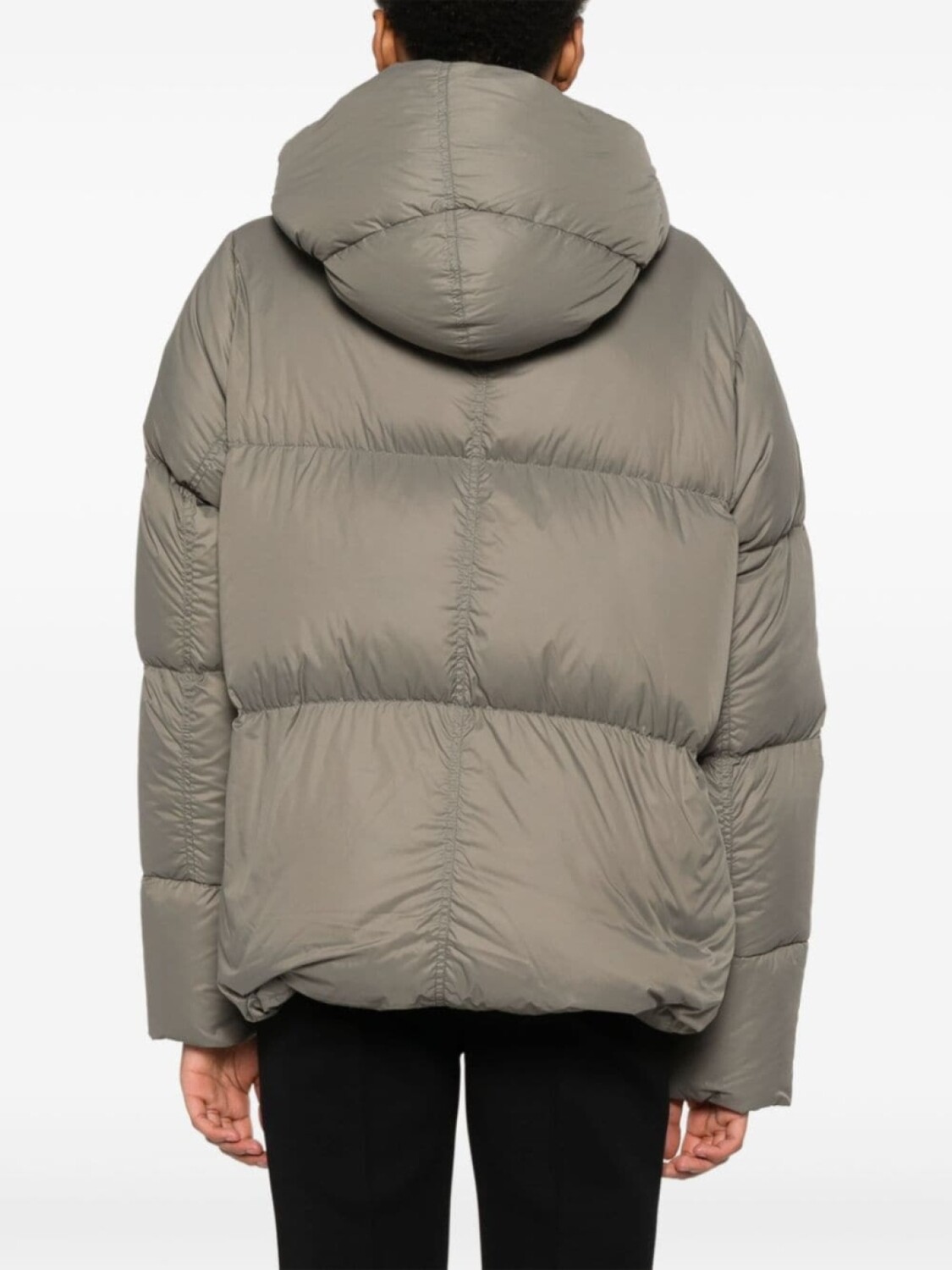 Подробнее о товаре: • серо-зеленый • наполнитель из смеси пуха и пера • дутый материал • стеганная модель • водоотталкивающий материал • ветронепродуваемая модель • застежка на кнопки и молнию спереди • объемный капюшон • длинные рукава • эластичные манжеты • нашивка с логотипом на рукаве • два кармана на молнии по бокам • съемные ремешки • цельная подкладка • прямой подол