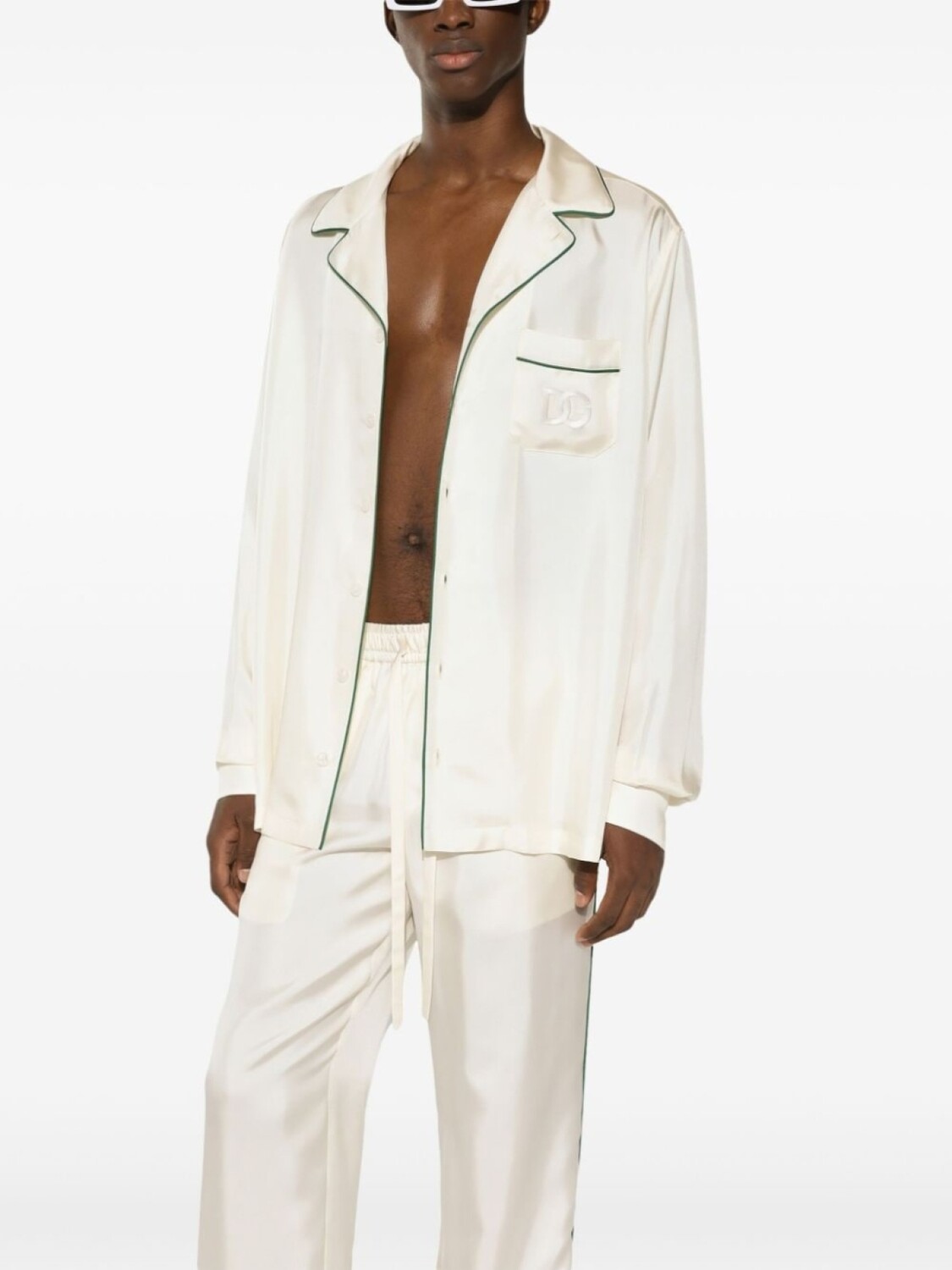 Dolce & Gabbana шелковая рубашка с вышитым логотипом, белый