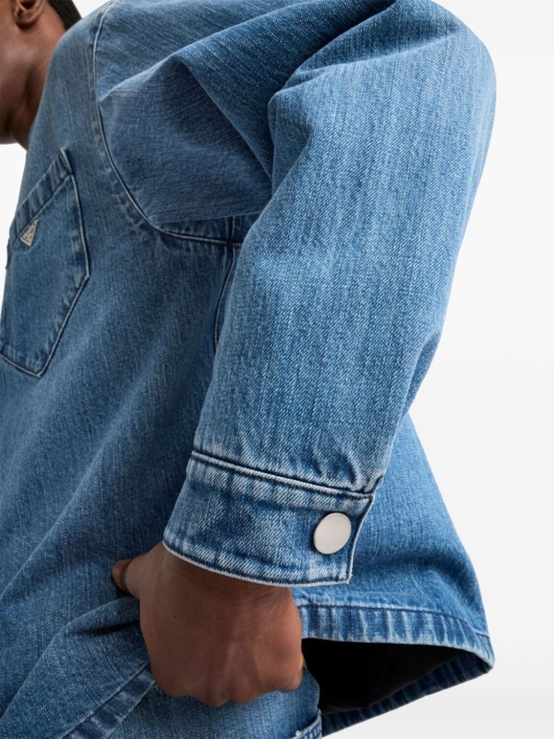 Prada рубашка из денима с логотипом в виде треугольника эмали, синий 218 819₽