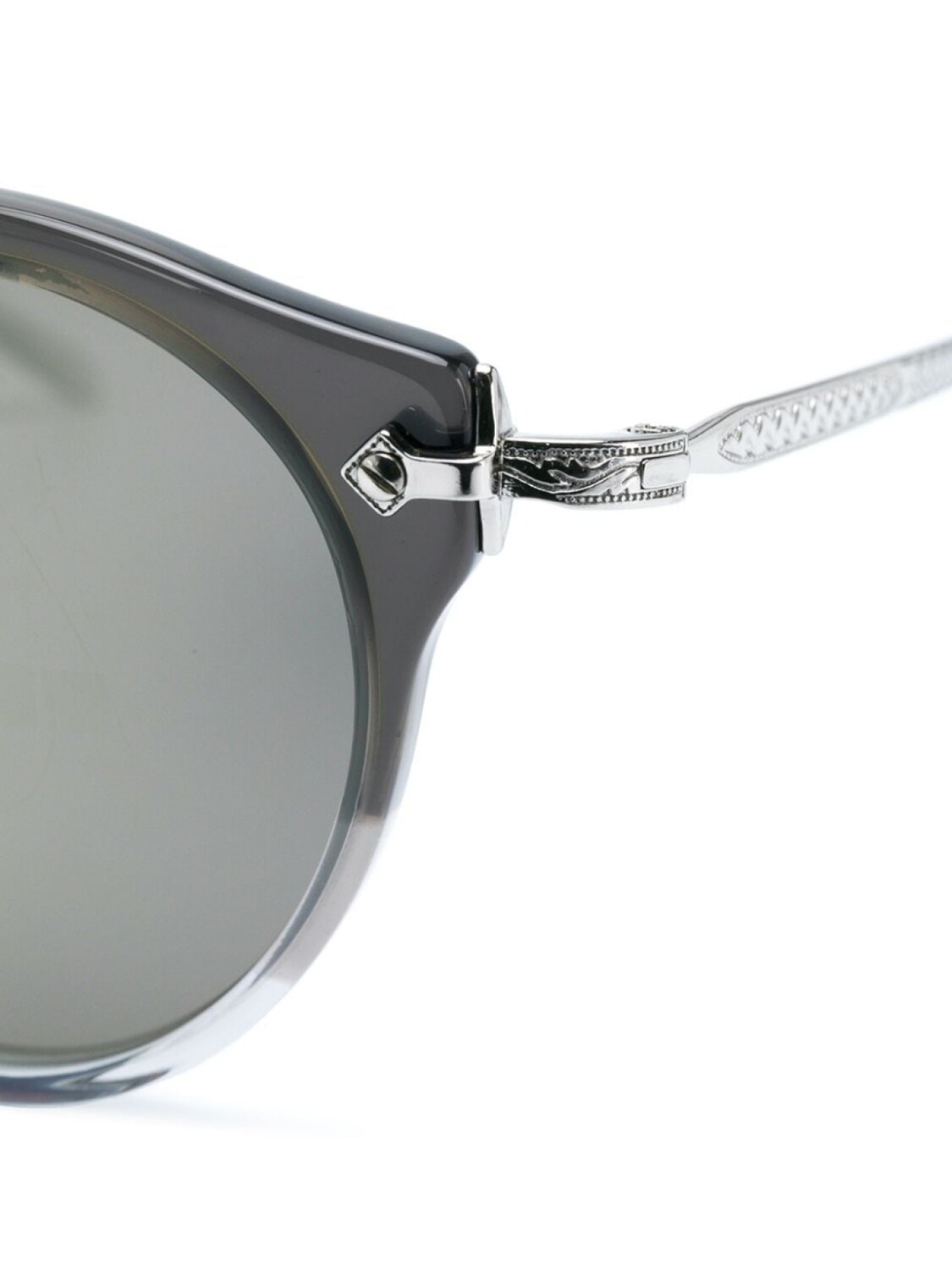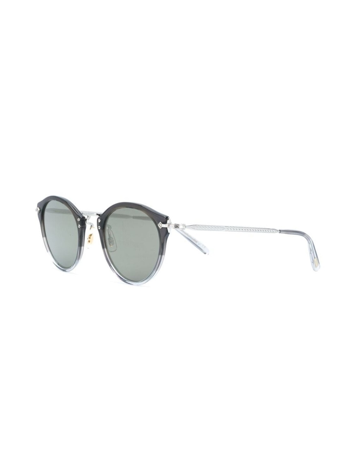 Round frame sunglasses от Oliver Peoples. Темные линзы, серебристая фурнитура и прямые дужки с изогнутыми концами. Цвет: черный. ..