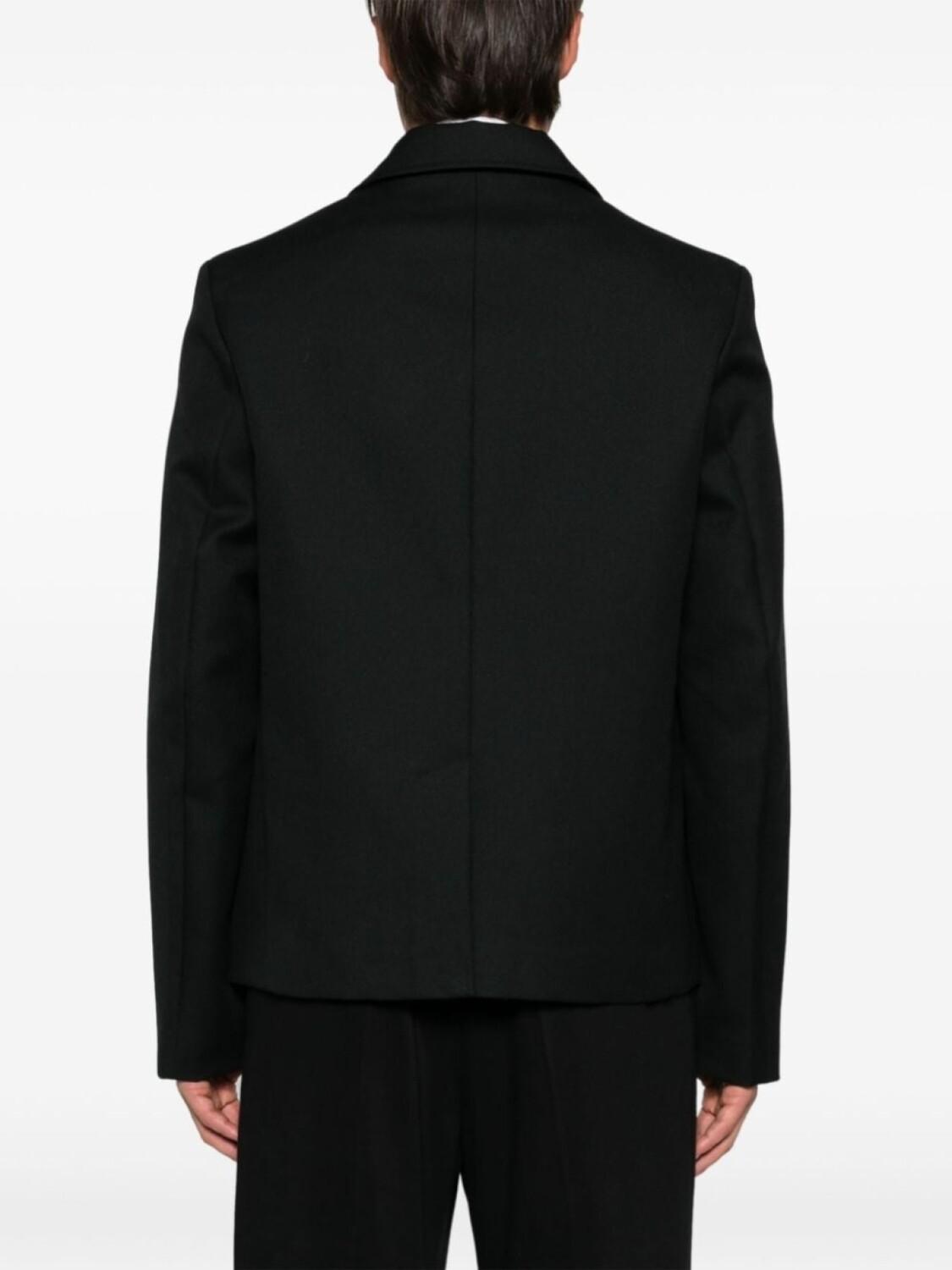 Угольно-черная натуральная шерсть зазубренные лацканы двубортный покрой застежка на пуговицы длинные рукава прямой подол полная подкладка