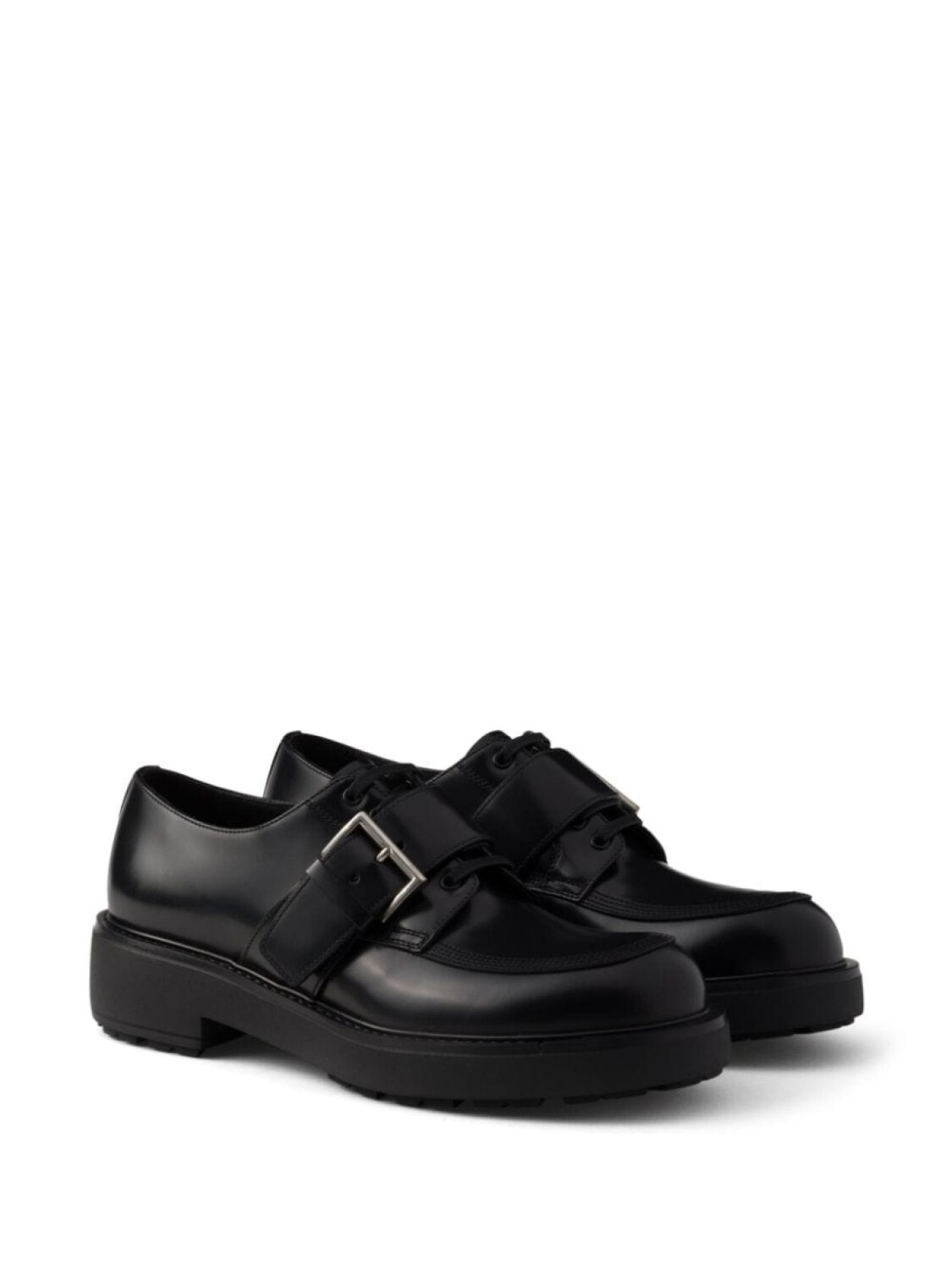 Prada туфли дерби из матовой кожи с пряжками, черный