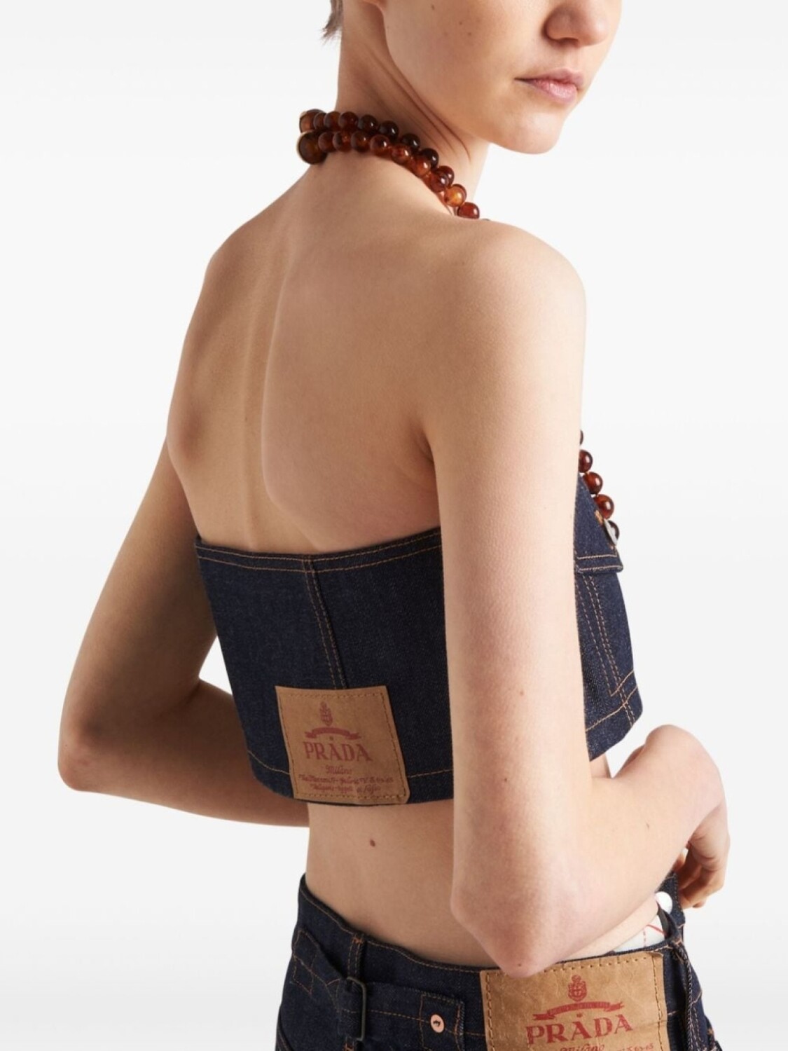 Prada укороченный джинсовый топ без бретелей, синий 173 212₽