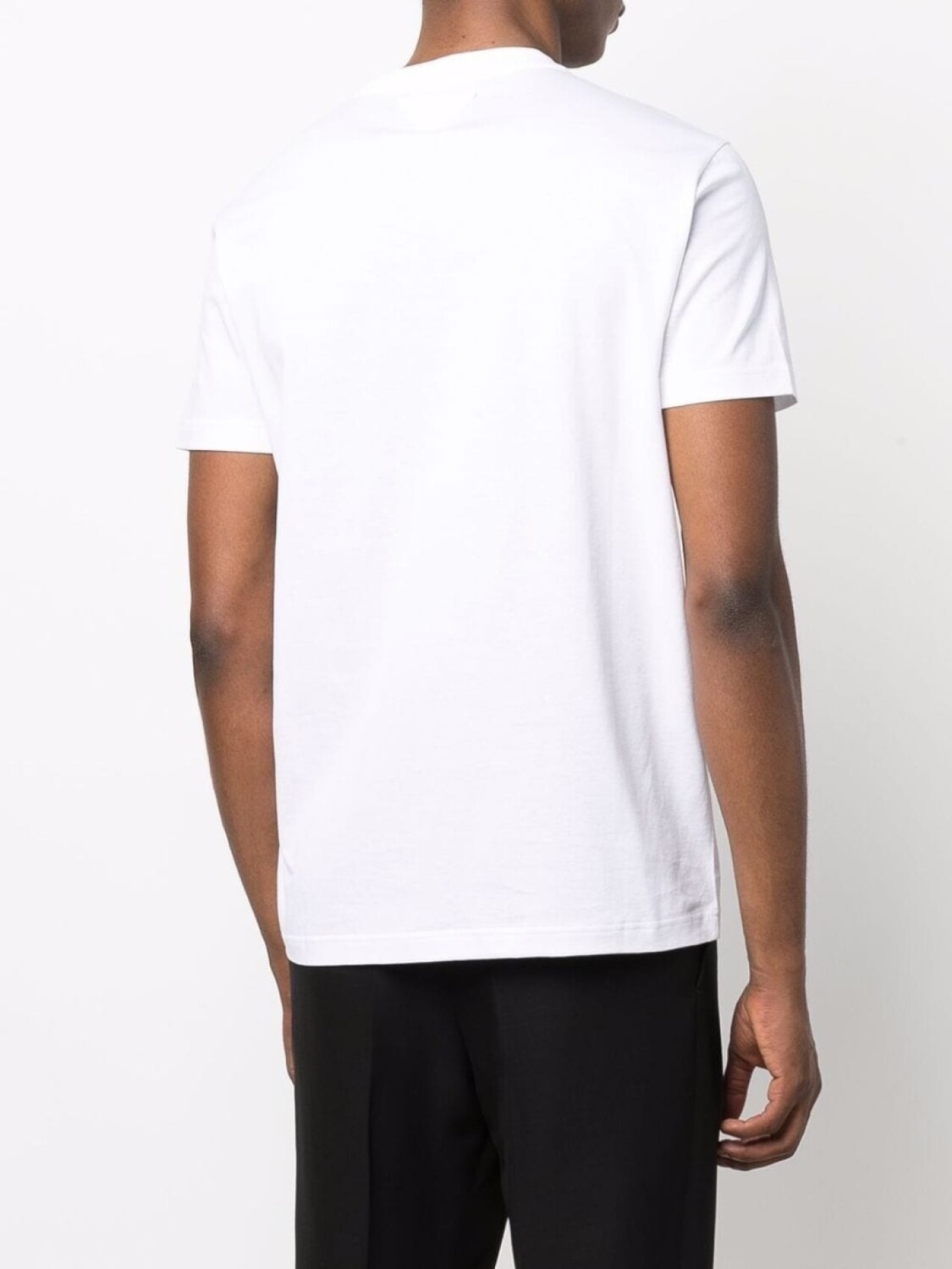 Нашивка с логотипом сзади, треугольный логотип, круглый вырез, короткие рукава и прямой подол. Цвет: белый.