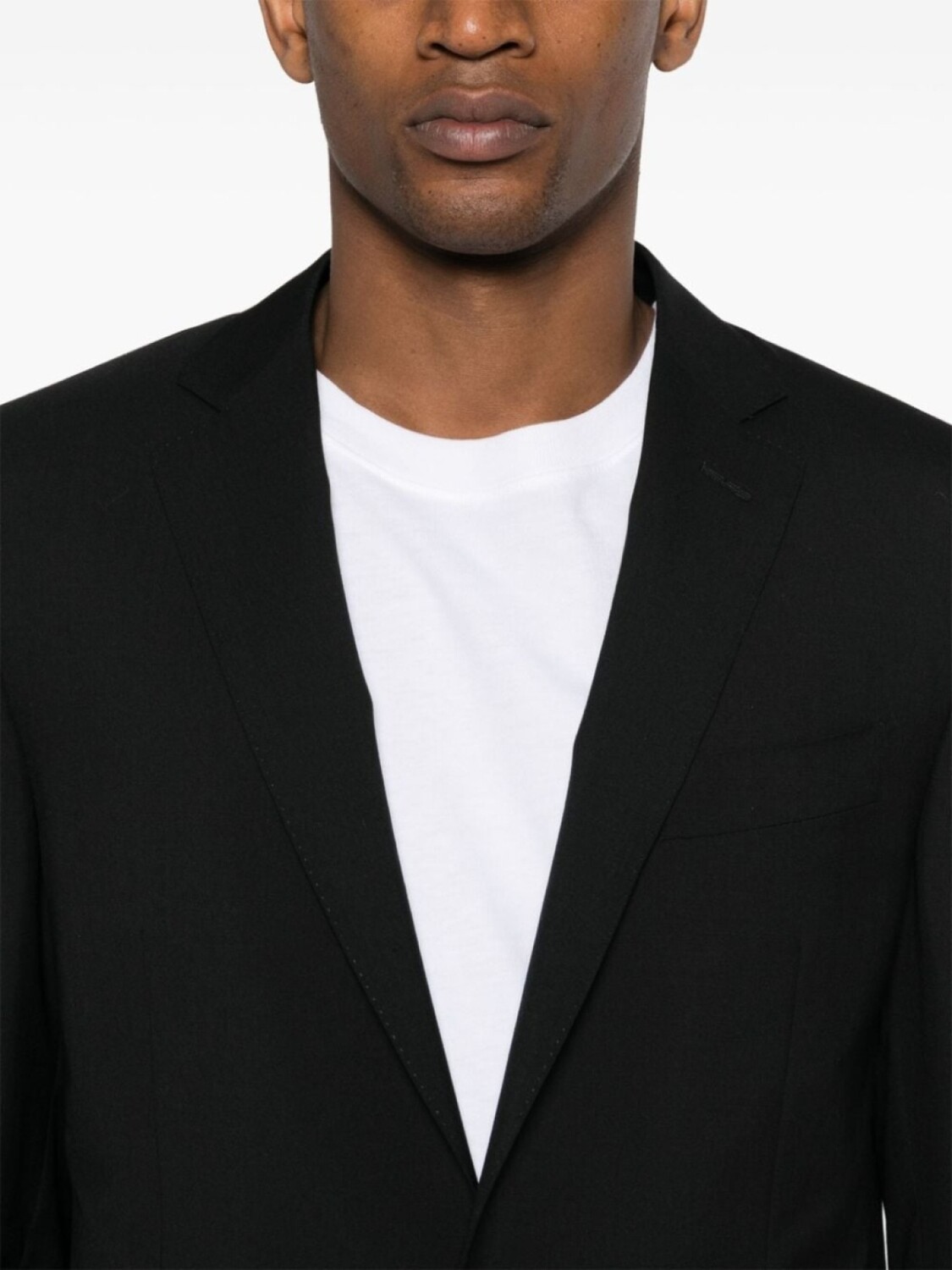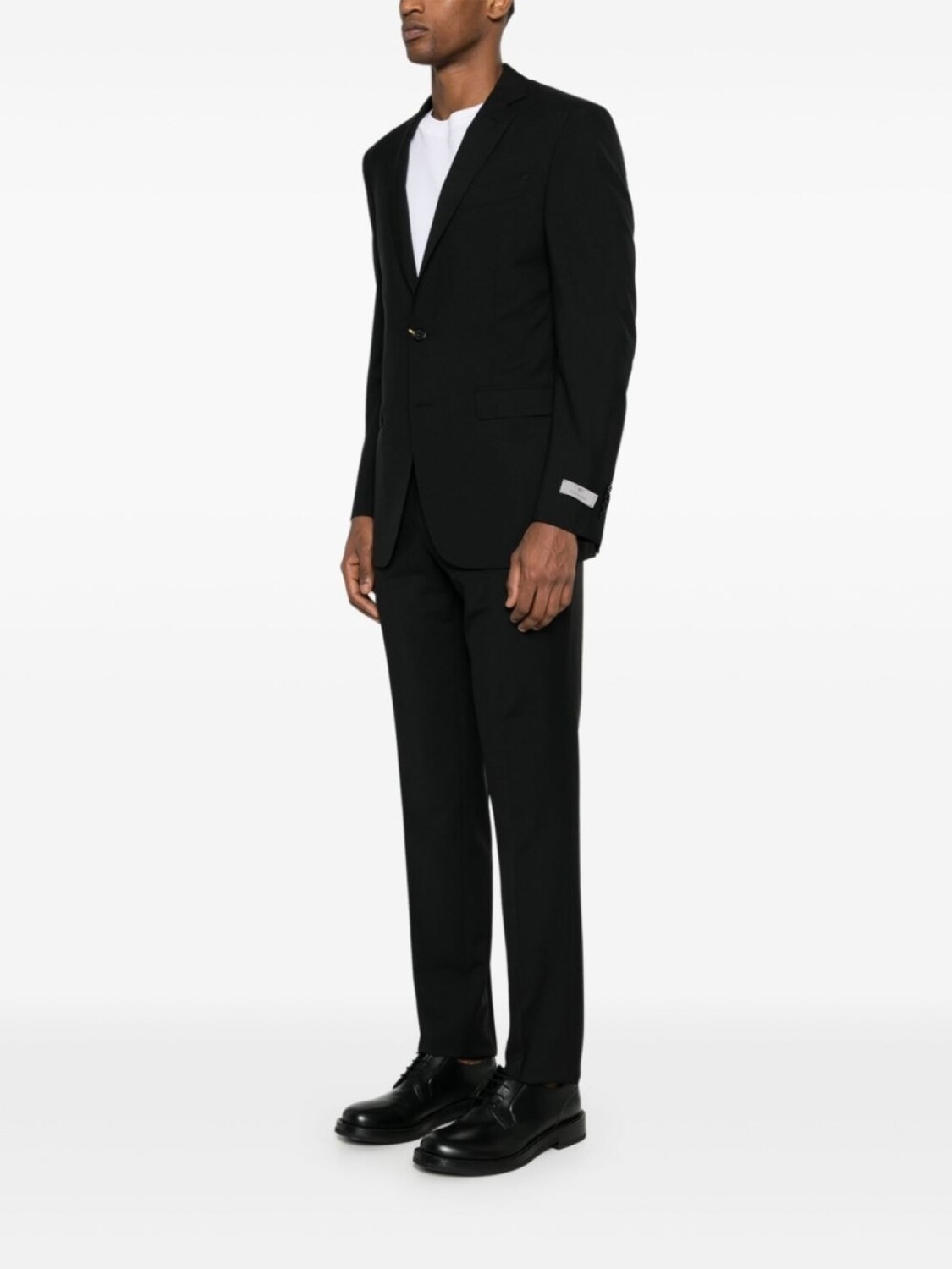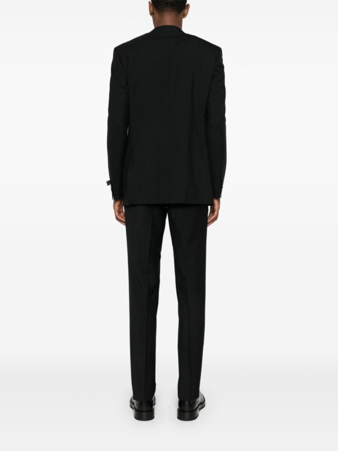 Подробнее о товаре: • черный • смесь шерсти и мохера • зазубренные лацканы • застежка на пуговицах спереди • подплечники • длинные рукава • манжеты на пуговицах • прорезной карман на груди • два передних кармана с клапанами • стрелки • петли для ремня • застежка на молнии и пуговице спереди • узкий крой • два прорезных кармана по бокам • два прорезных кармана на пуговицах сзади • прямой подол