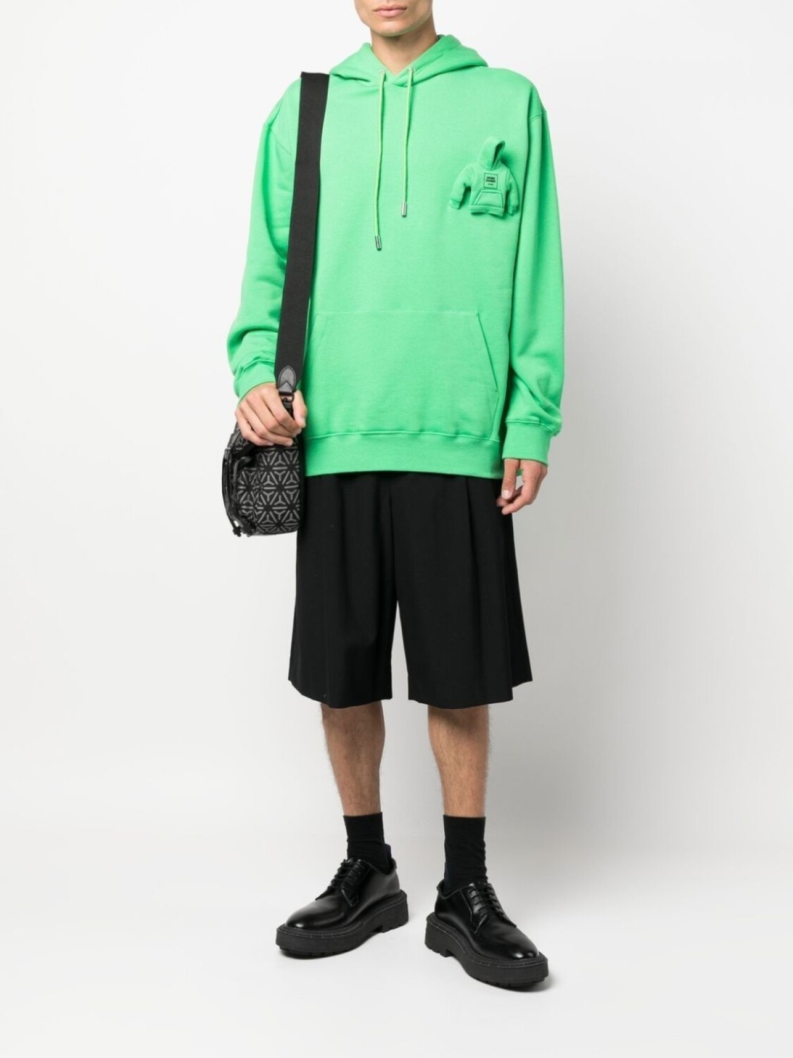 Неоново-зеленый, хлопок, логотип-аппликация, затягивающийся на шнурок капюшон, накладной карман спереди и длинные рукава.