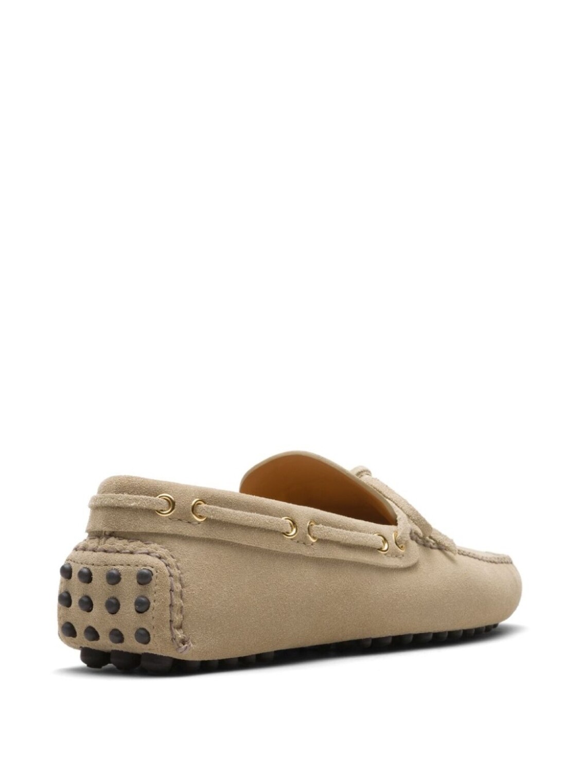 Светло-бежевый, замша из телячьей кожи, бант, отделка металлическими люверсами, квадратный носок, кожаная стелька с логотипом, рифленая резиновая подошва, золотистая фурнитура