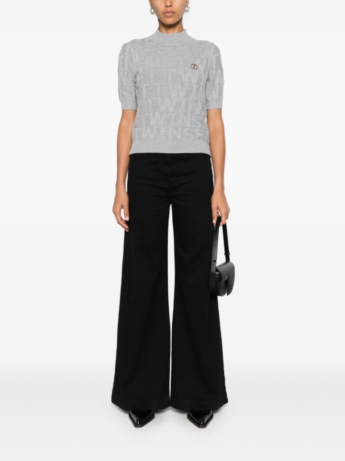 TWINSET трикотажный топ с логотипом, серый