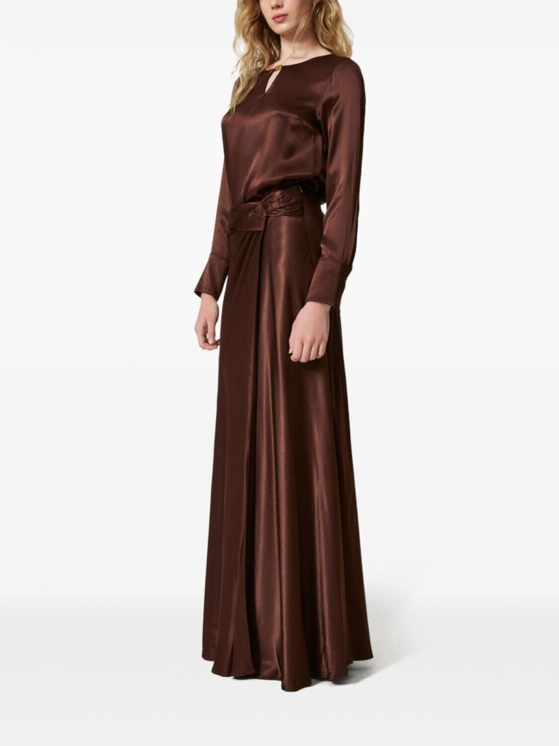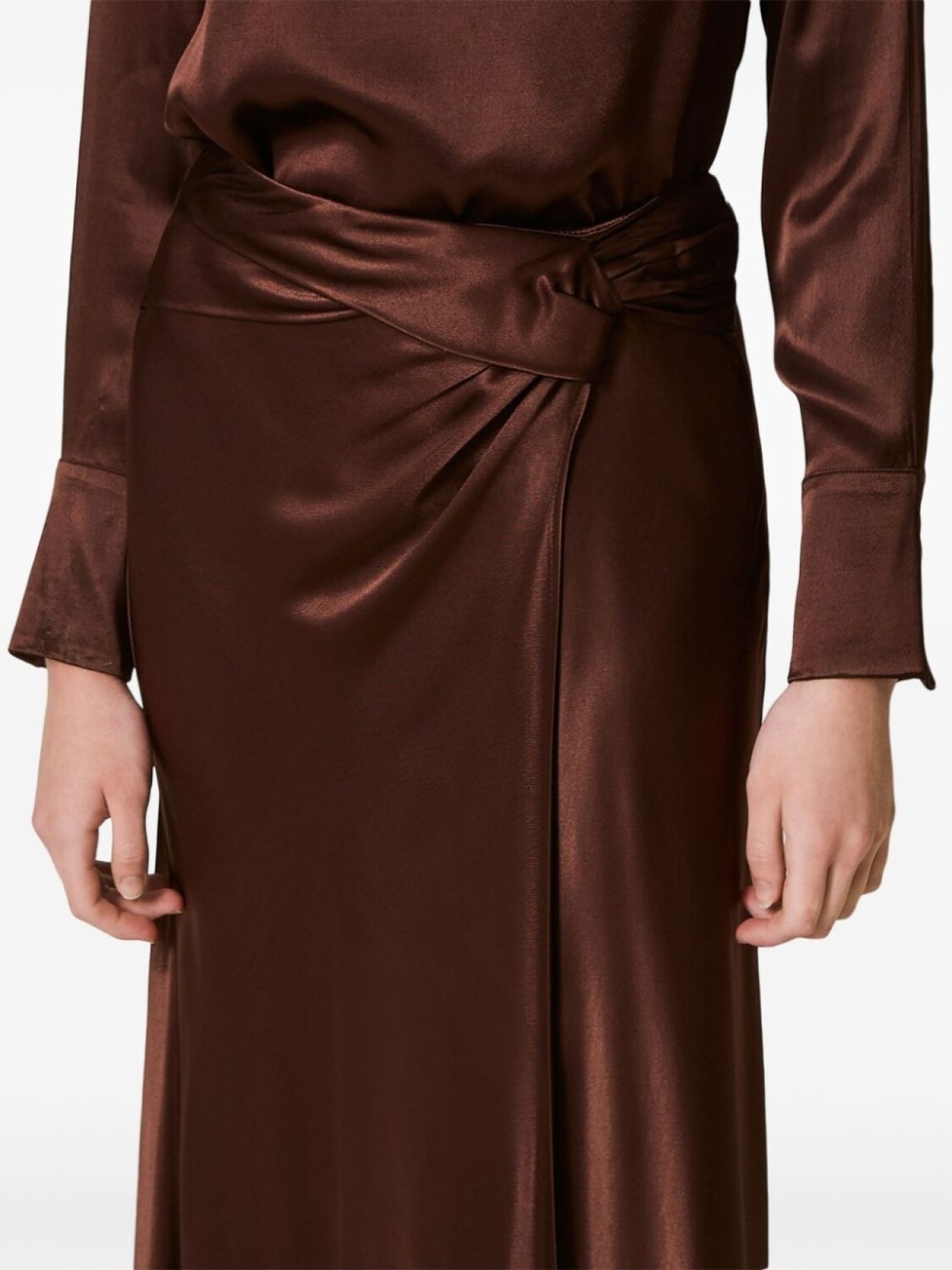 TWINSET юбка из атласа с драпировкой, коричневый