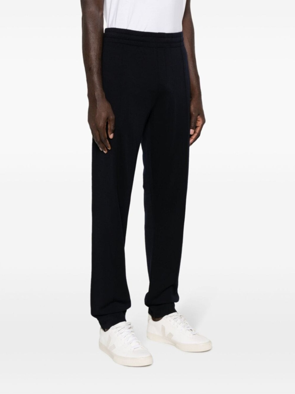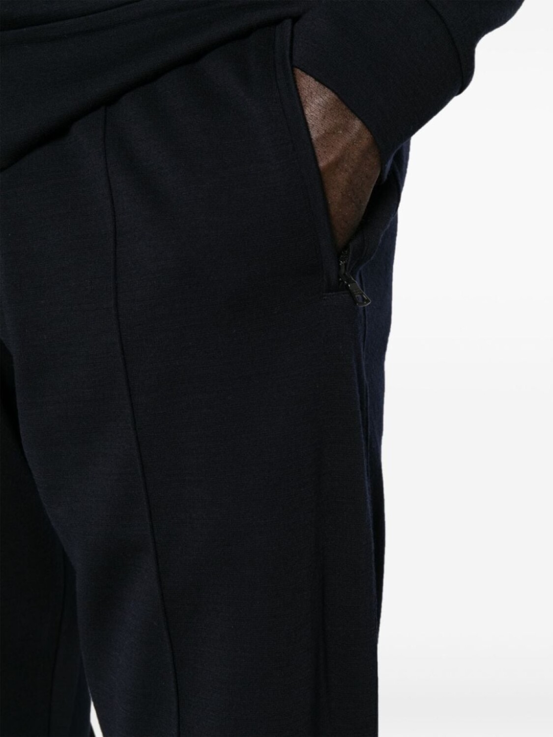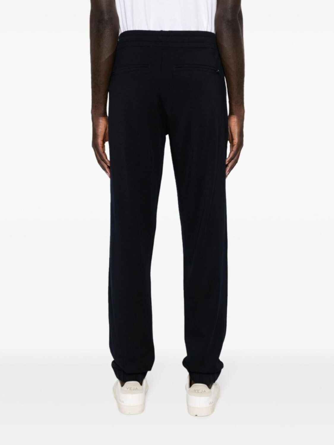 Темно-синий, хлопок, шерсть, эластичный пояс, прямой крой, модель без застежки, два кармана по бокам, два прорезных кармана сзади и прямой подол.
