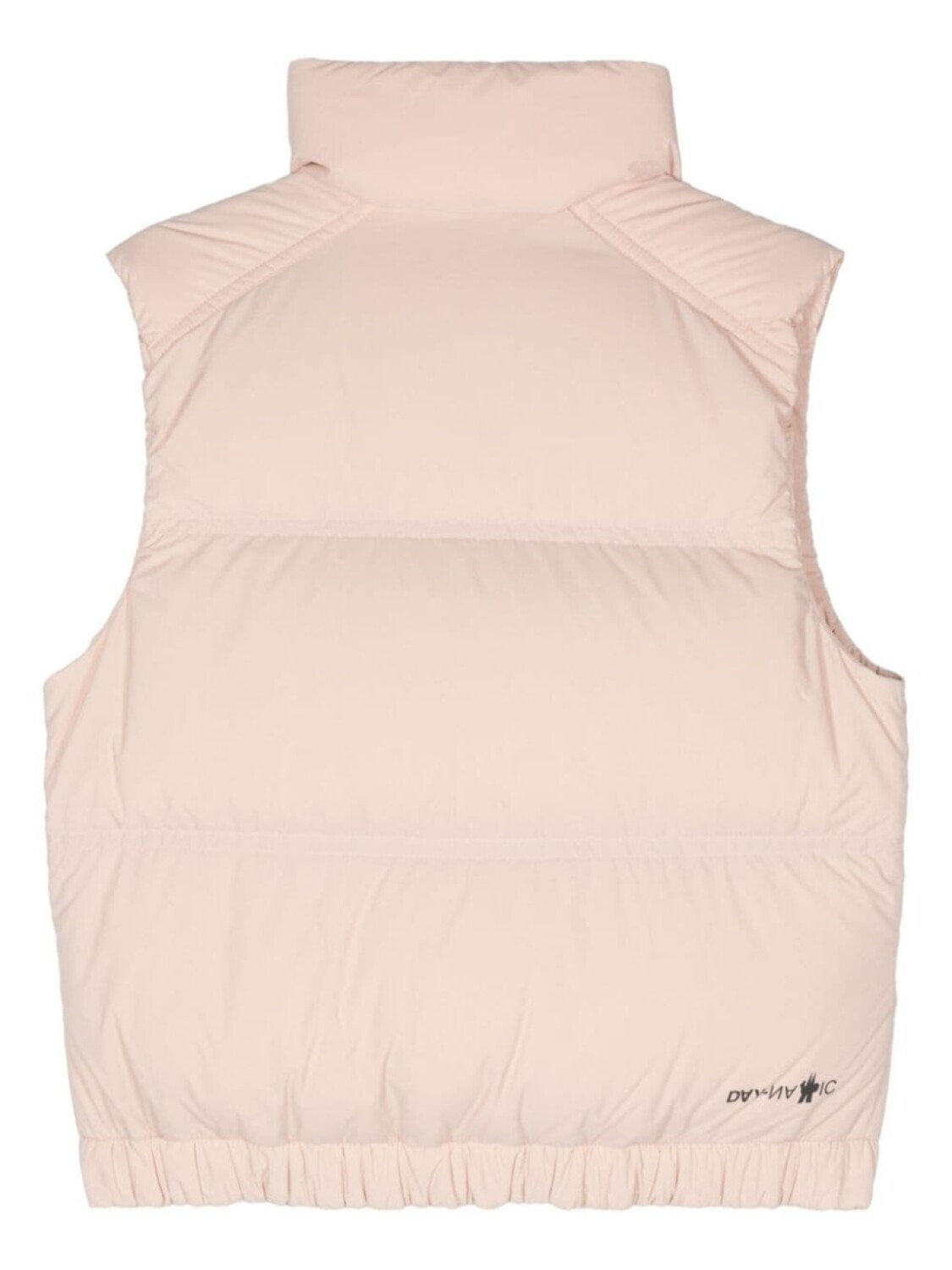 Светло-розовый утепленный дизайн с наполнителем из пуха и пера водоотталкивающий ветрозащитный утепленный дизайн с высоким воротом без рукавов нашивка с логотипом спереди застежка-молния спереди карманы по всей длине подкладка эластичный подол застежка на кнопки спереди