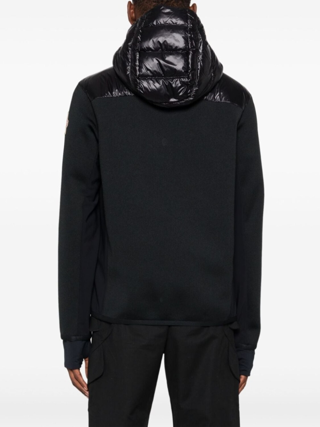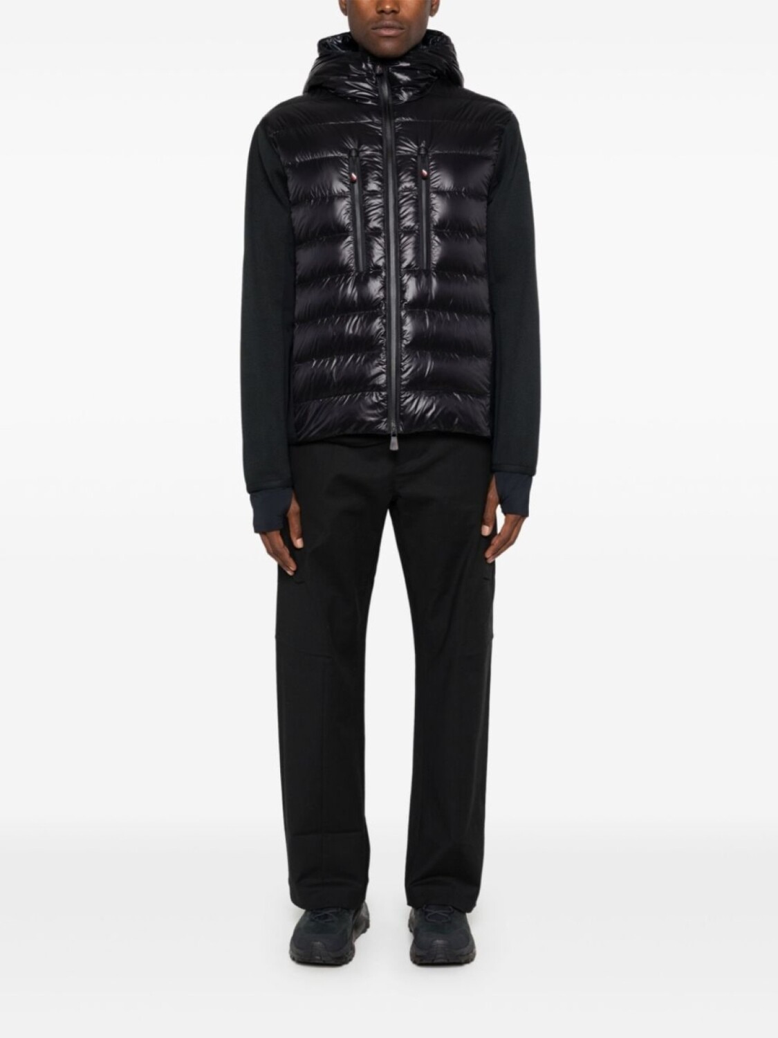 Подробнее о товаре: • черный • вязаный дизайн • стеганная модель • наполнитель из смеси пуха и пера • дутые вставки • дизайн со вставками • двусторонняя молния спереди • классический капюшон • длинные рукава • нашивка с логотипом на рукаве • эластичные манжеты • вырезы для больших пальцев • два нагрудных кармана на молнии • частичная подкладка • эластичный прямой подол