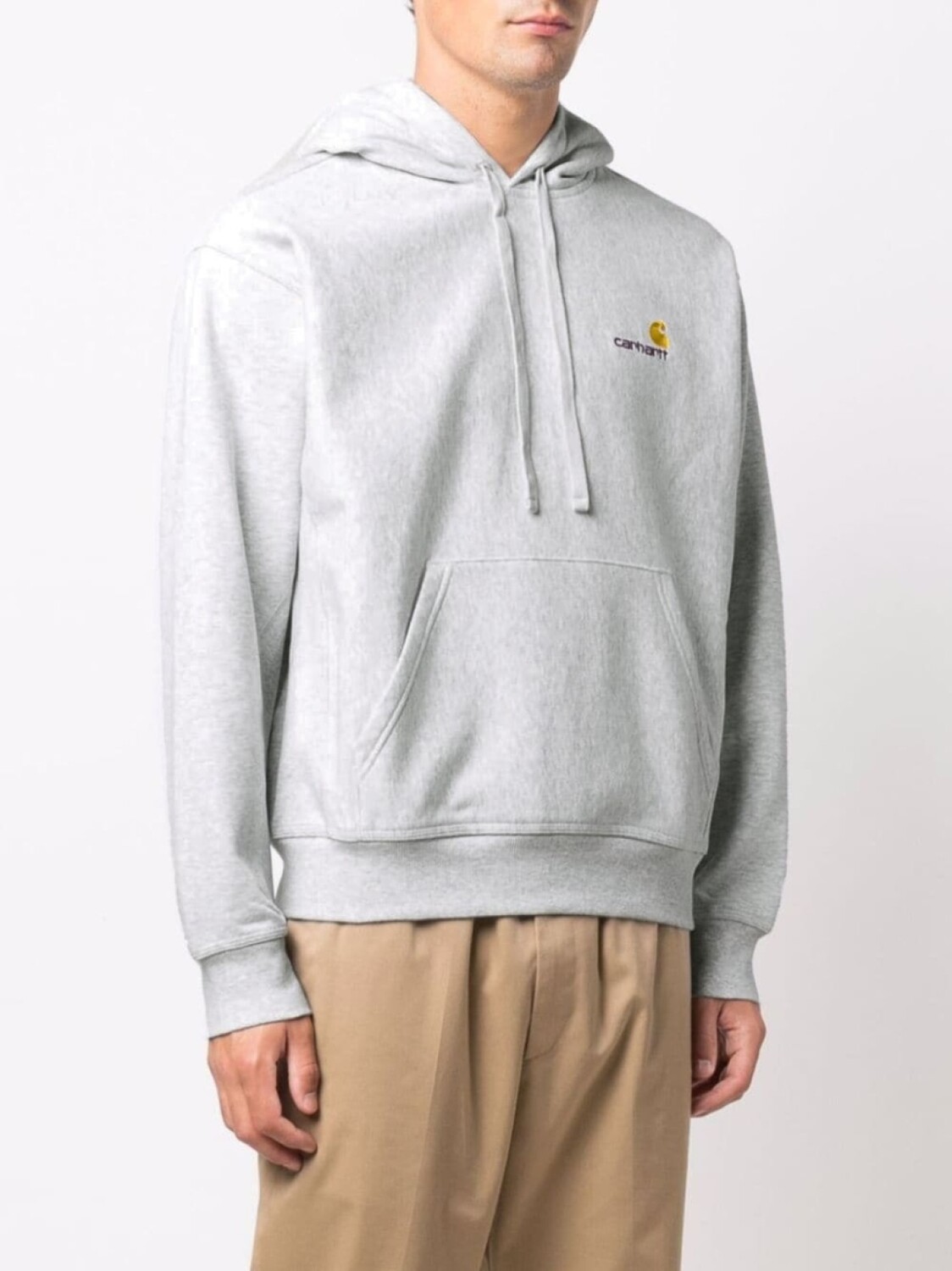 Вышитый логотип на груди, затягивающийся на шнурок капюшон, длинные рукава, карман-муфта и прямой подол. Цвет: белый.