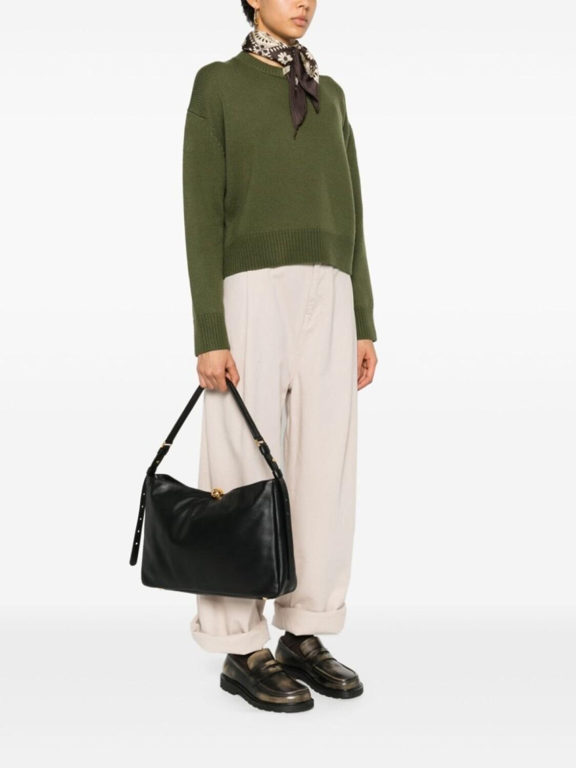 Подробнее о товаре: • черный • телячья кожа • аппликация в виде сферы • регулируемый ремень на плечо • основное отделение • тисненый логотип сзади • внутренний карман на молнии • внутренние накладные карманы • внутренняя бирка с логотипом • цельная подкладка • металлические ножки • золотистая фурнитура с выгравированным логотипом • потайная застежка на магните • В комплект входит мешок-пыльник для хранения.
