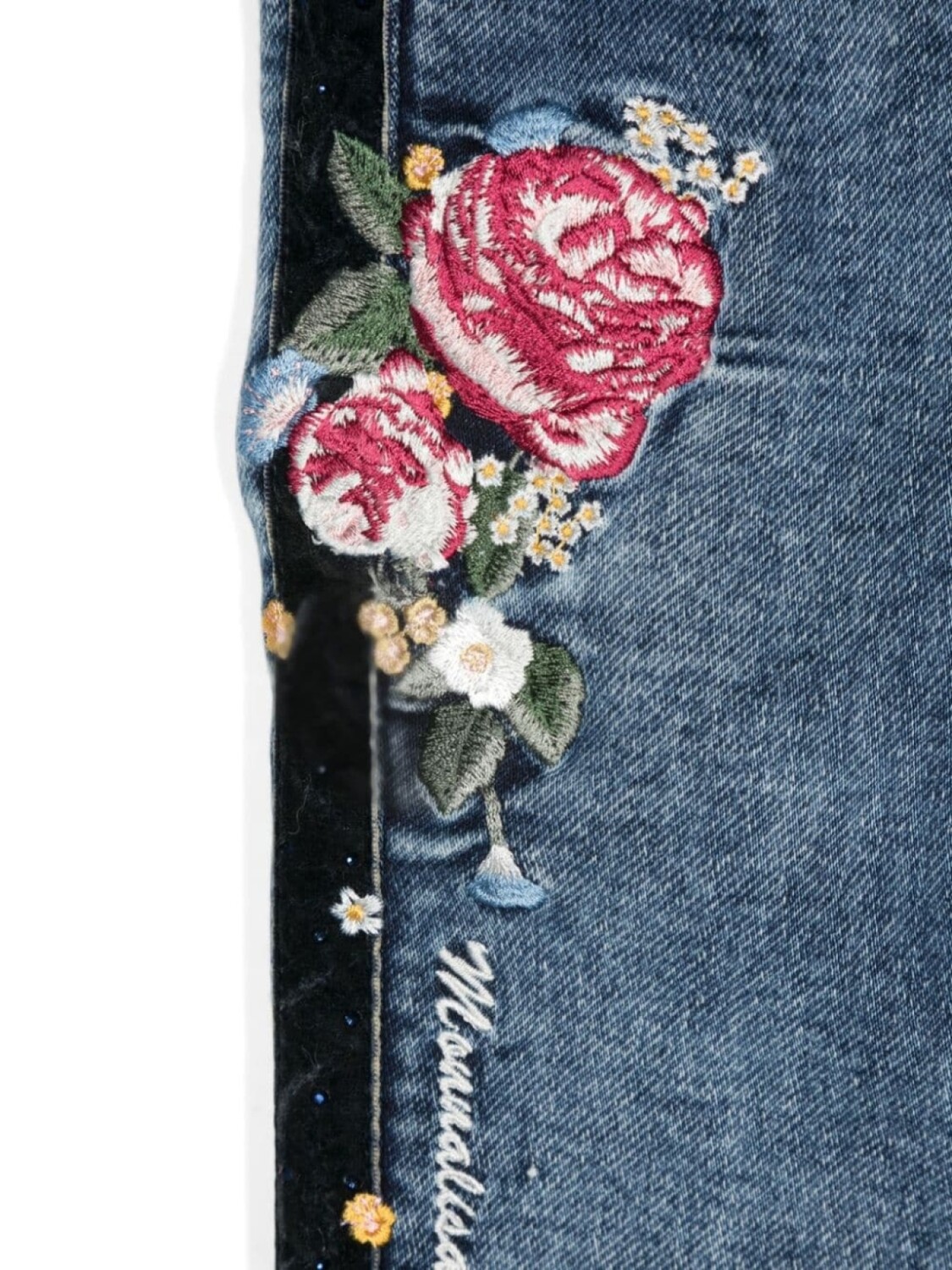 Monnalisa джинсы с цветочной вышивкой, синий
