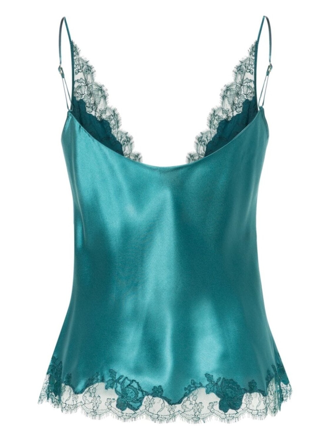 Carine Gilson шелковый топ на бретелях с кружевом, синий