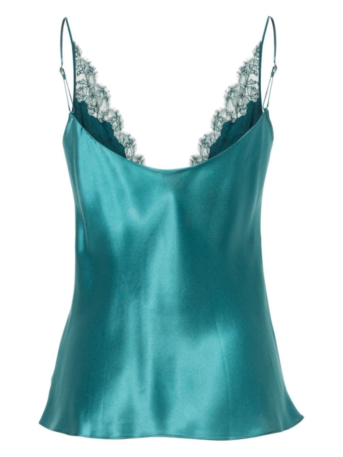 Carine Gilson шелковый топ на бретелях с кружевом, синий