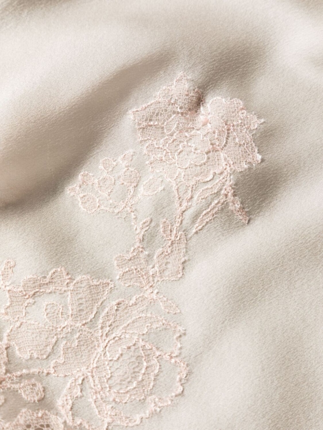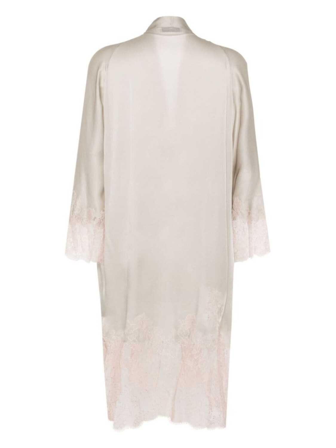 Carine Gilson шелковый халат с кружевом Calais-Caudry, серый