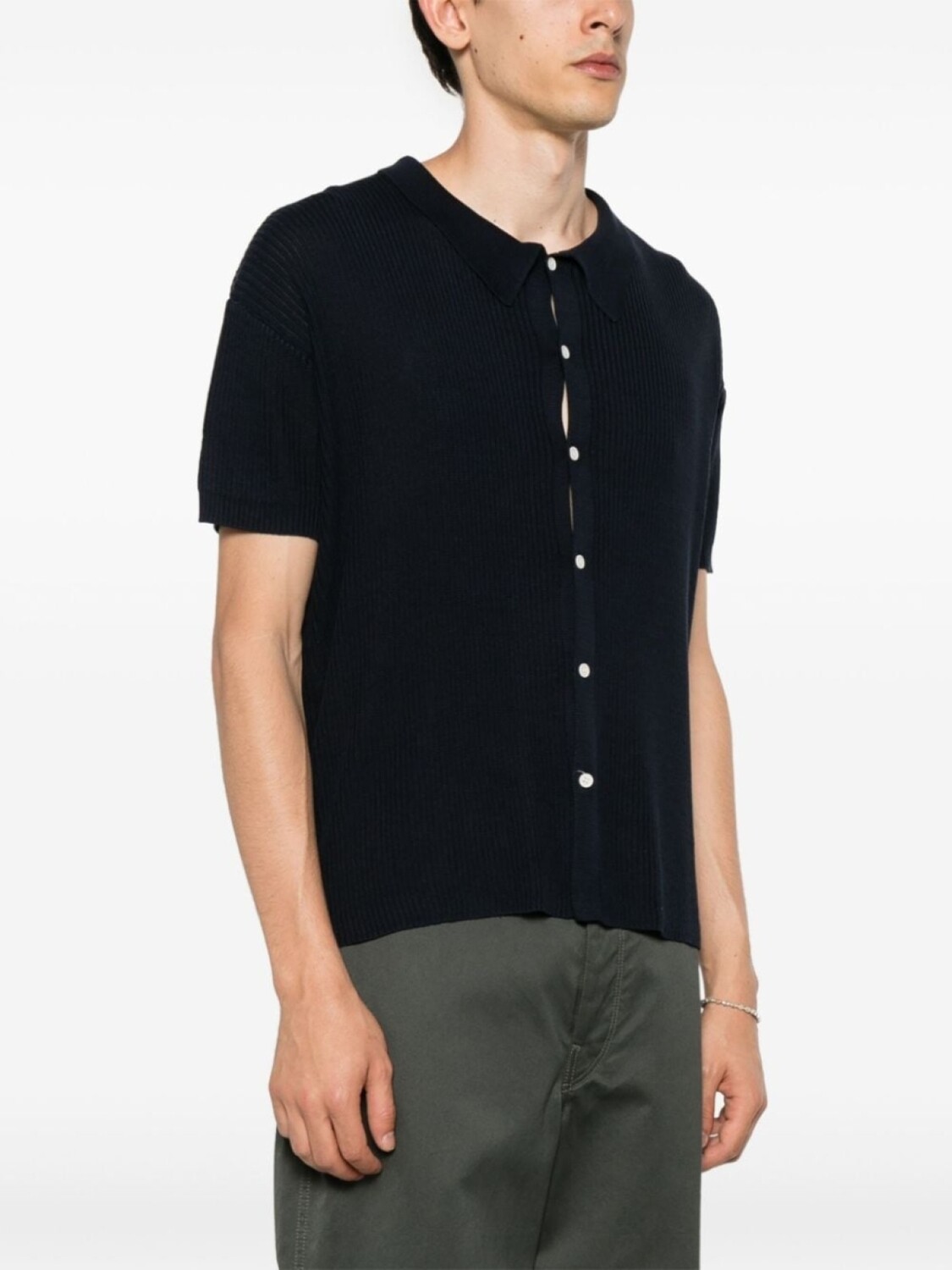 Темно-синий, TENCEL™, трикотаж в рубчик, косой воротник, короткие рукава, прямой подол, застежка на пуговицах спереди, Это унисекс-модель. Обратите внимание, что для нее используется мужская размерная сетка., Этот товар как минимум на 50% состоит из материалов, которые признаны более безопасными для окружающей среды, и/или произведены с использованием методов, которые помогают сократить потребление воды и химических веществ., Мы сотрудничали с Good On You — независимым агентством, которое оценивает эффективность брендов с точки зрения их влияния на планету, людей и животных. Рейтинг по многим критериям был упрощен до пяти баллов. Чтобы попасть в категорию ответственных, крупным брендам нужно получить как минимум 4 балла из 5 («Хорошо»), а небольшим маркам — как минимум 3 из 5 («Достойное начало»)., Это товар из коллекции бренда, который появился на FARFETCH, получив оценку 3 из 5 («Достойное начало») от Good on You. Обратите внимание, что этот рейтинг — собственная оценка бренда и это не гарантирует, что данный продукт изготовлен из экологически чистых материалов., Узнать больше о том, какие товары получают отметку «Ответственный выбор», можно здесь.