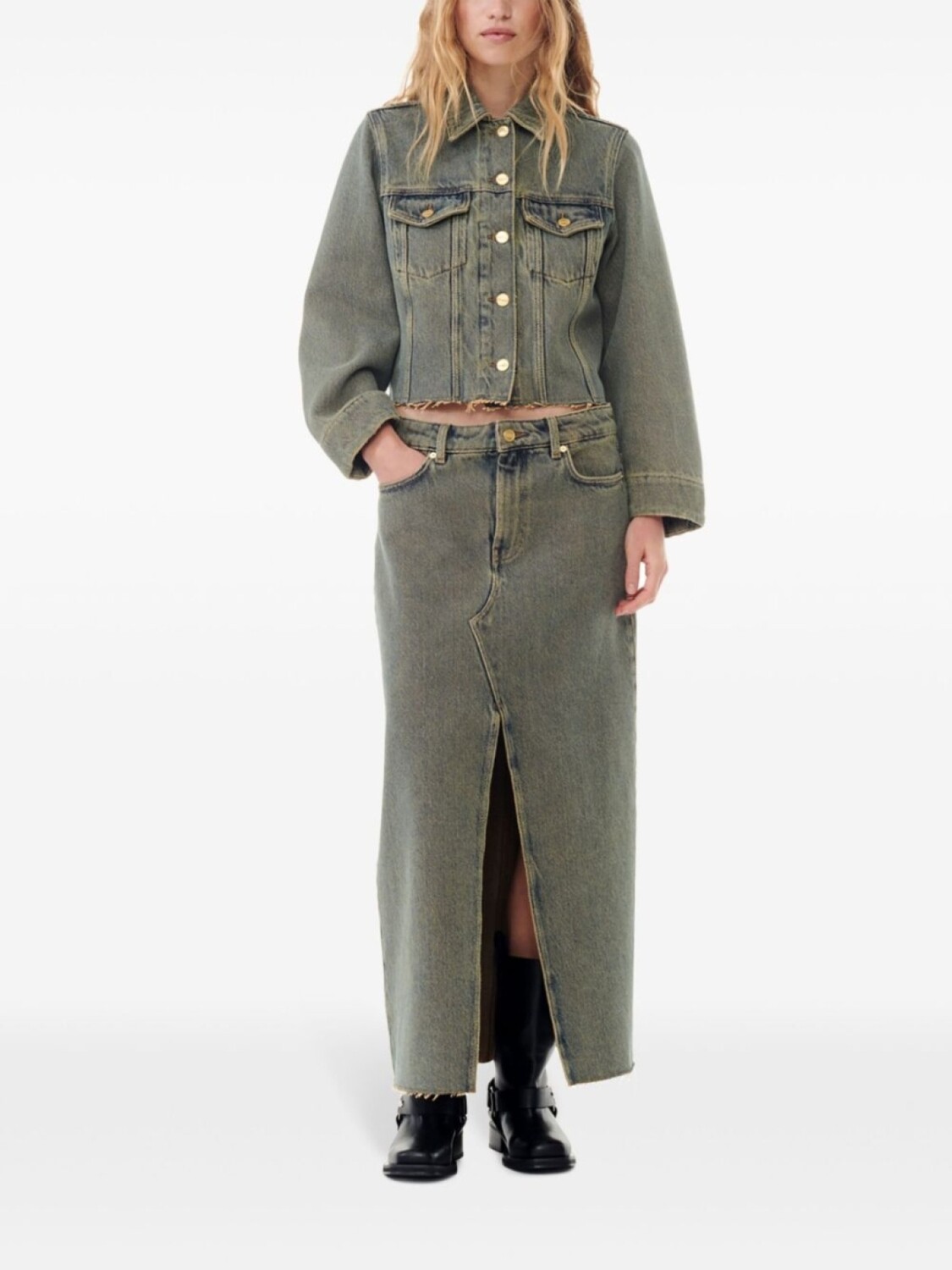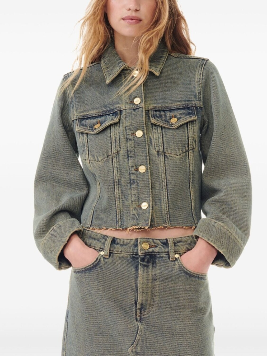 GANNI джинсовая куртка с необработанными краями, серый