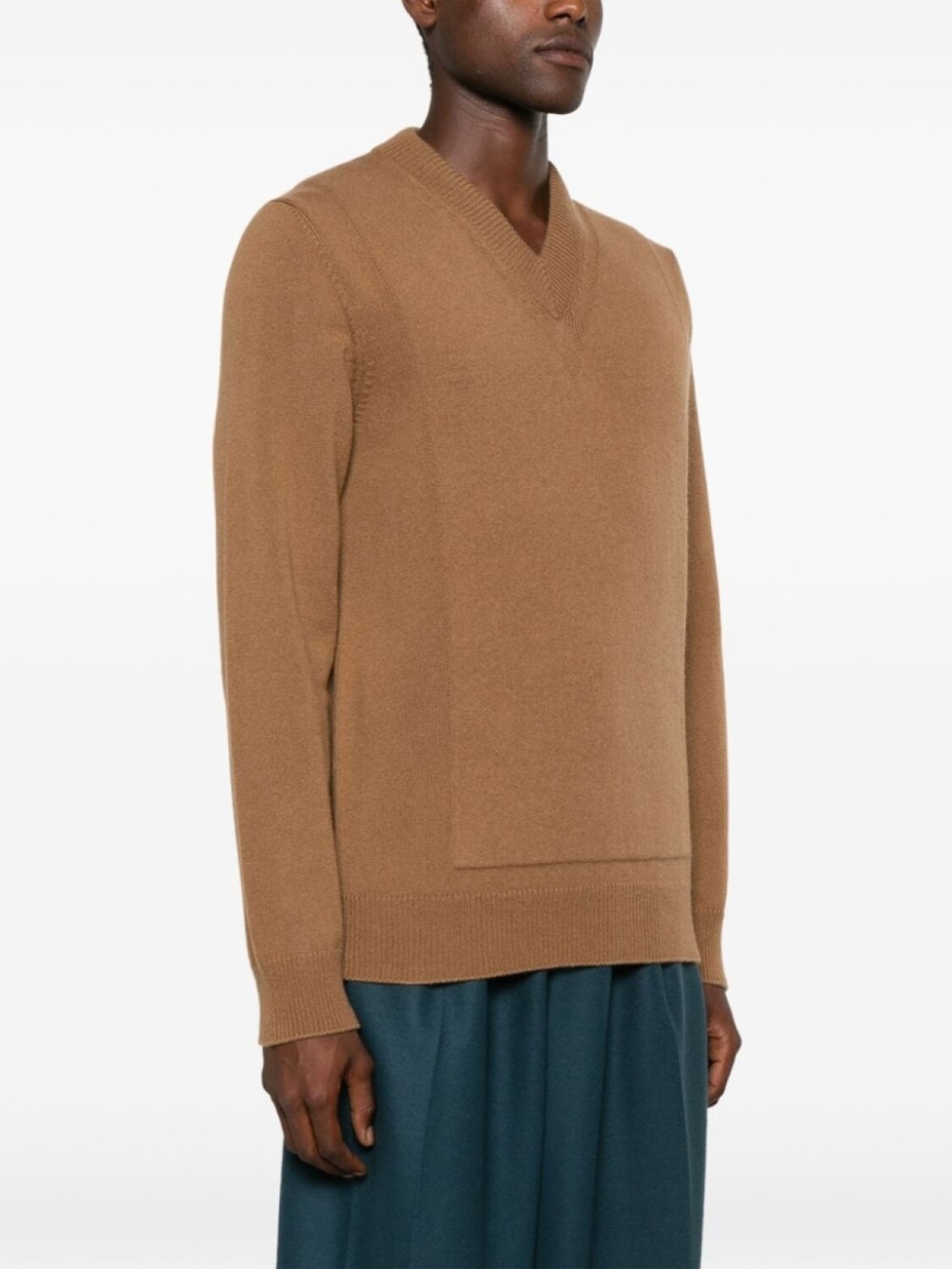 Jil Sander джемпер с V-образным вырезом, ребристый, коричневый 58 824₽