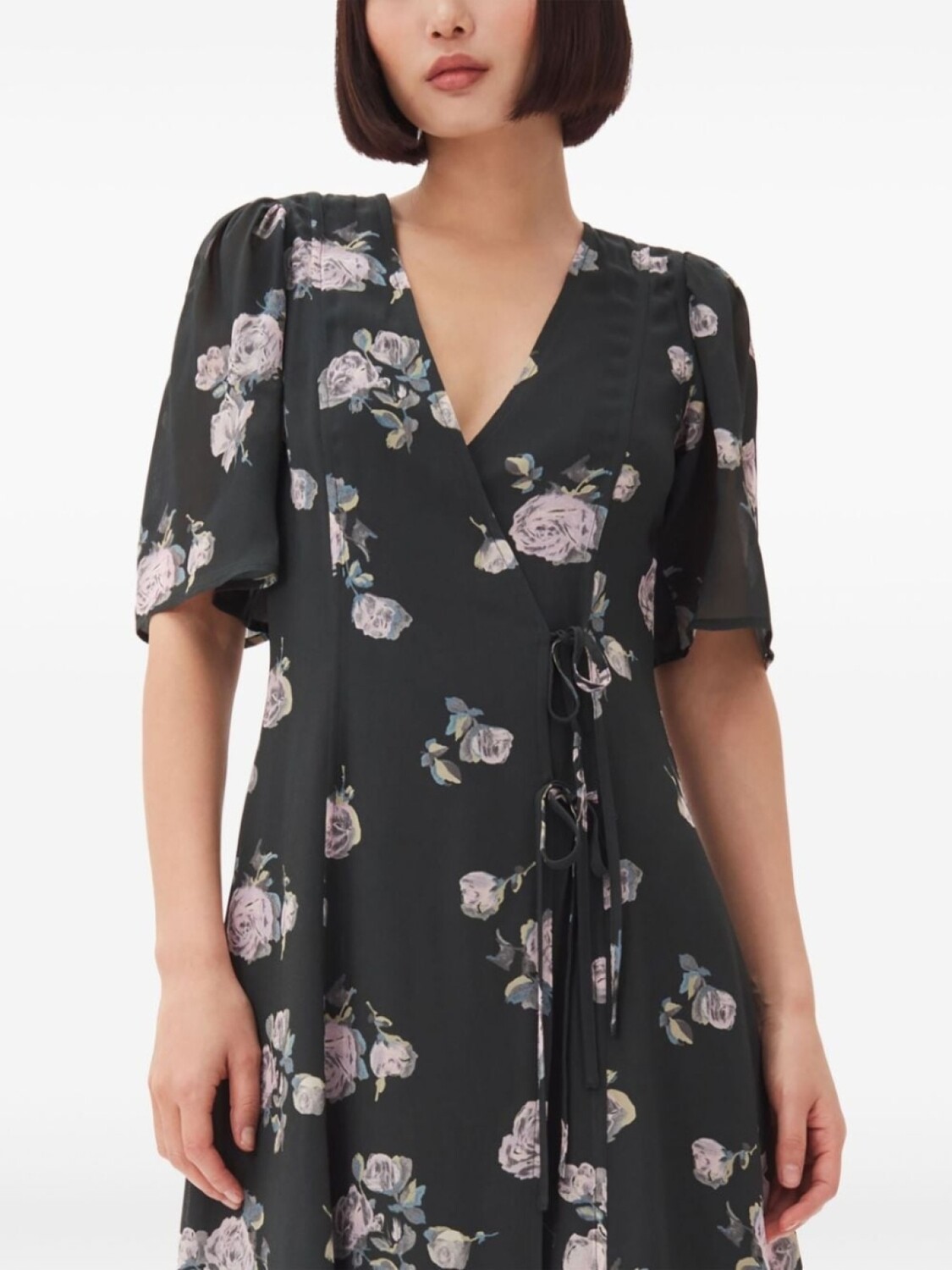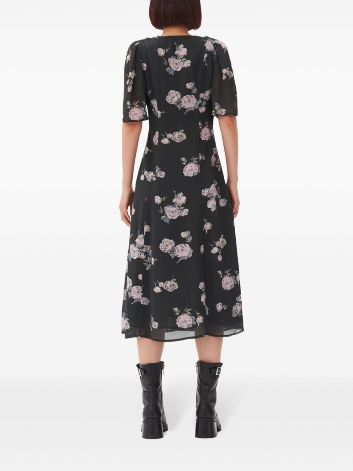 GANNI креповое платье миди с цветочным принтом, черный