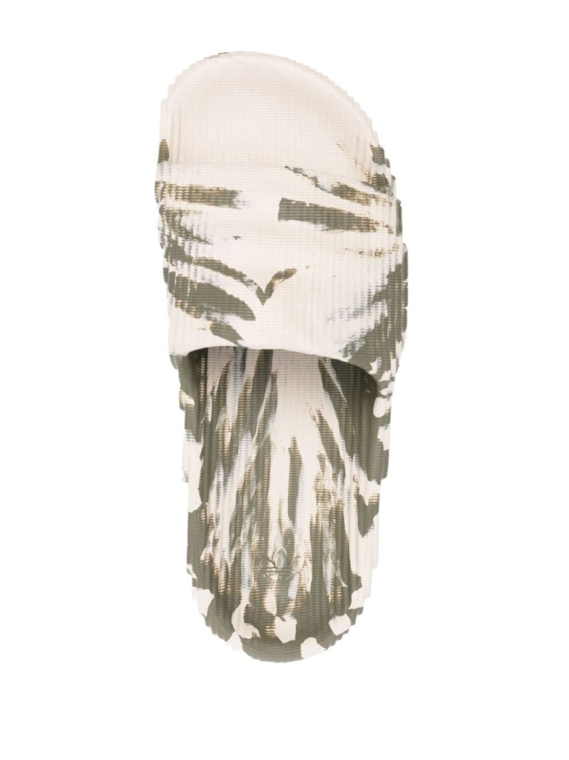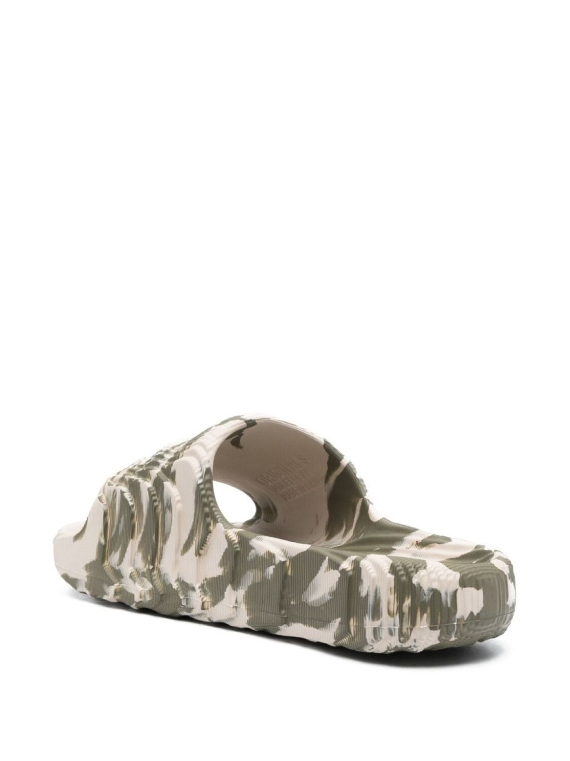 Оливково-зеленый, кремово-белый, камуфляжный принт, открытый носок, тисненый логотип внутри, модель без застежки и плоская резиновая подошва. Это унисекс-модель. Обратите внимание, что для нее используется мужская размерная сетка.