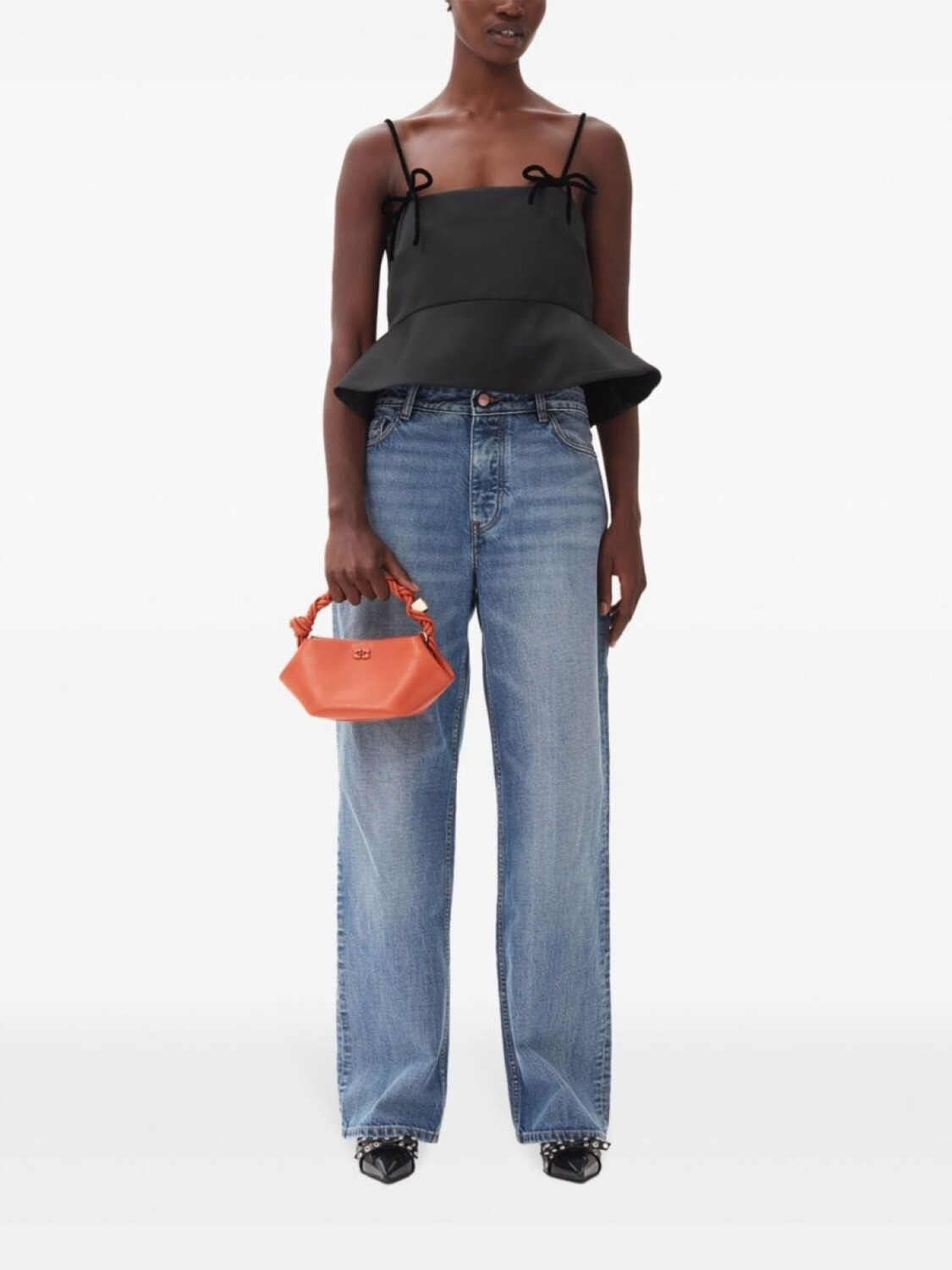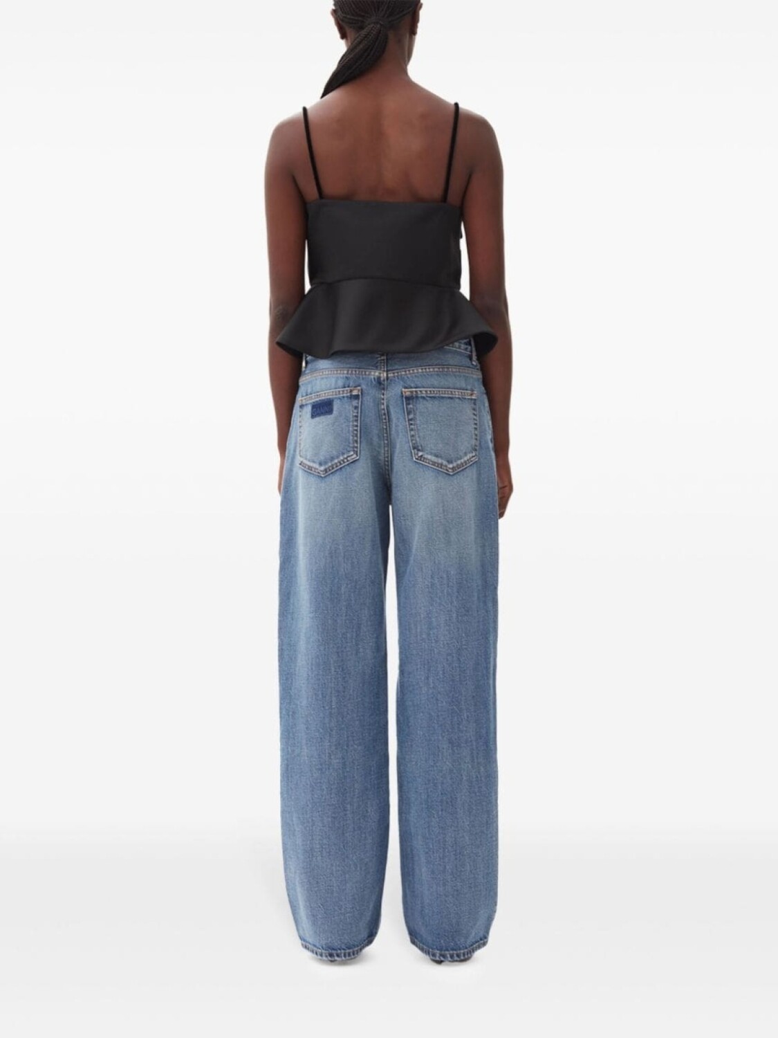 GANNI укороченный топ с баской, черный 17 473₽