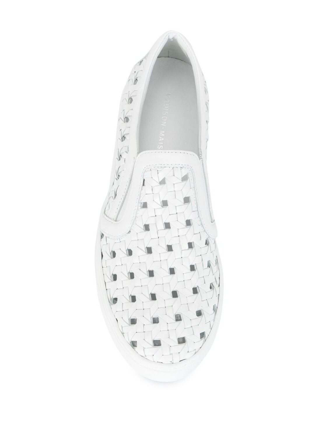 Плетеные слипоны от Madison.Maison. Закругленный носок, тканый дизайн, эластичные детали, фирменная стелька и белая резиновая подошва. Цвет: белый.