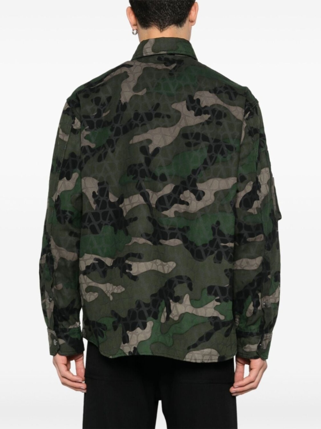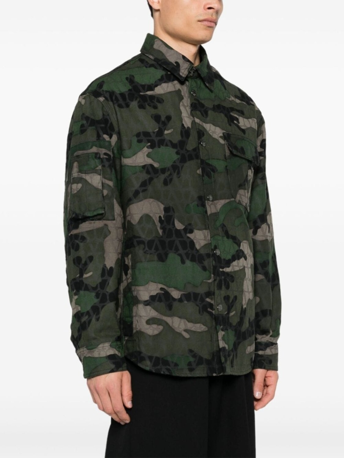 Подробнее о товаре: • Коллекция Valentino Ready To Wear • темно-зеленый/черный/светло-бежевый • хлопковый канвас • камуфляжный принт • пуговицы с выгравированным логотипом • классический воротник • застежка на кнопках спереди • длинные рукава с застежкой на кнопках • нагрудный карман с клапаном • два прорезных кармана сбоку • внутренние накладные карманы • прямой подол
