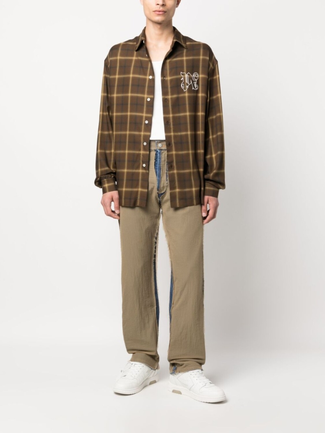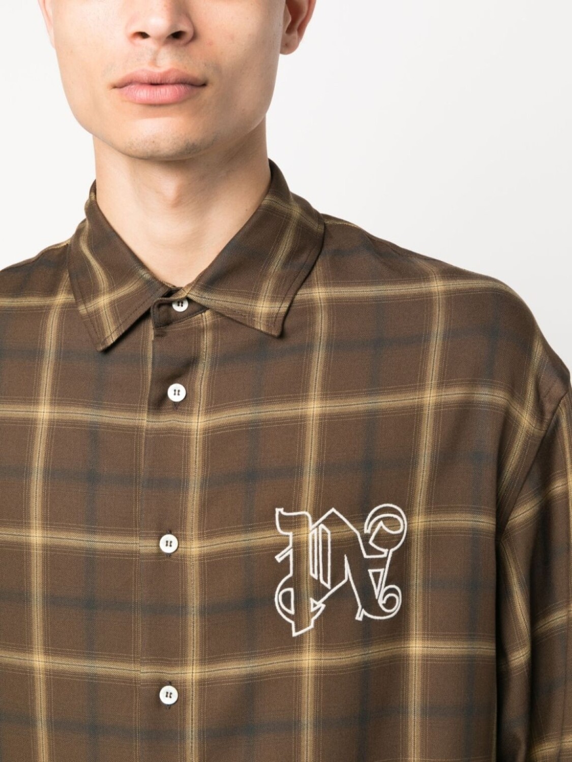 Palm Angels клетчатая рубашка с монограммой PA, коричневый