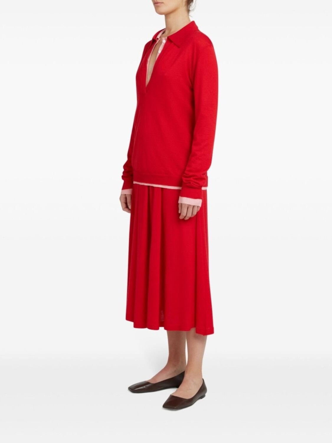 Ярко-красная трикотажная конструкция из смеси кашемира и шелка Воротник-поло V-образный вырез Длинные рукава Прямой подол Мы сотрудничаем с Good On You — независимым агентством, которое оценивает, как бренды работают с точки зрения их воздействия на планету, людей и животных, с многокритериальной оценкой, упрощенной до пятибалльной шкалы. Чтобы получить наш лейбл сознательности, более крупные бренды должны набрать не менее четырех из пяти («Хорошо»), в то время как более мелкие бренды должны набрать не менее трех из пяти («Это начало»). Этот товар принадлежит бренду, получившему оценку пять из пяти («Отлично») от Good on You на момент его добавления на FARFETCH. Обратите внимание, что это рейтинг на уровне бренда, и он не гарантирует, что этот продукт изготовлен из сознательных материалов. Узнайте больше о том, что делает продукт сознательным, на нашей странице критериев осознанности
