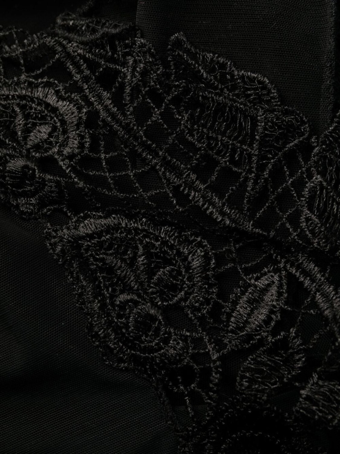 черный смесовый хлопок прозрачный материал кружевные вставки модель на запах длинные рукава закругленный подол