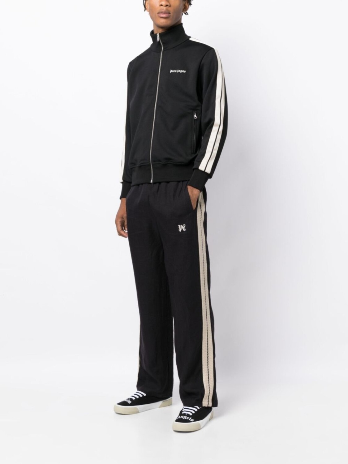 Palm Angels льняные брюки с вышитым логотипом, черный