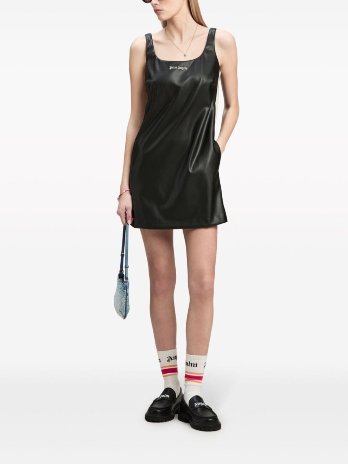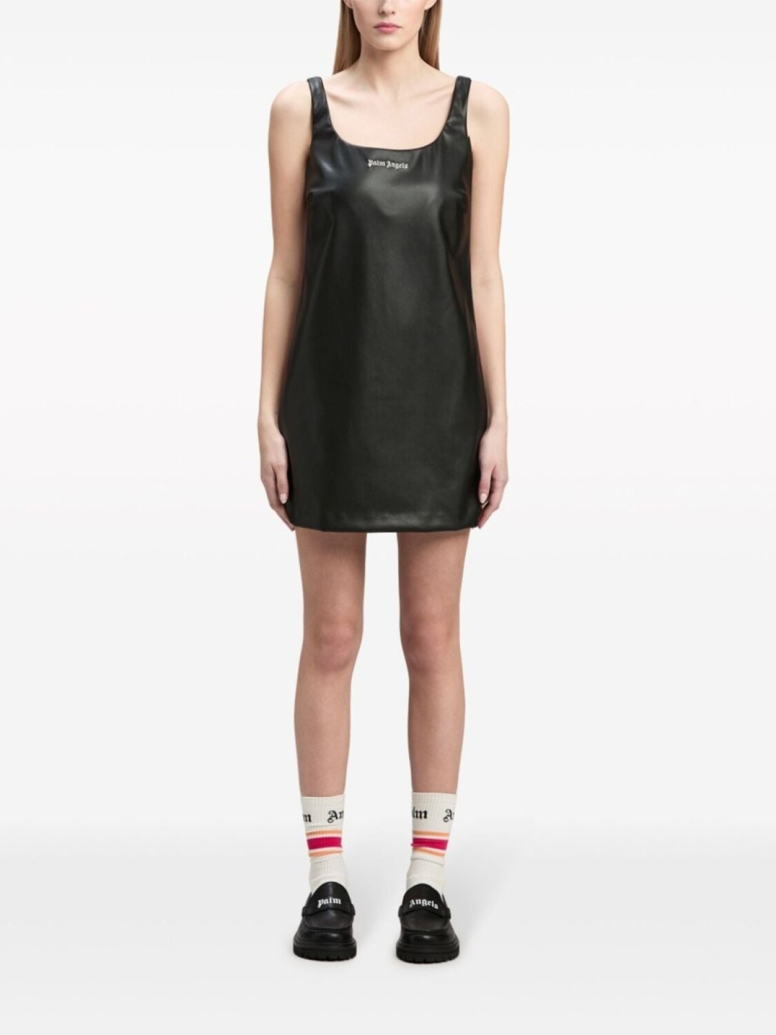 Palm Angels платье мини с квадратным вырезом и вышитым логотипом, черный