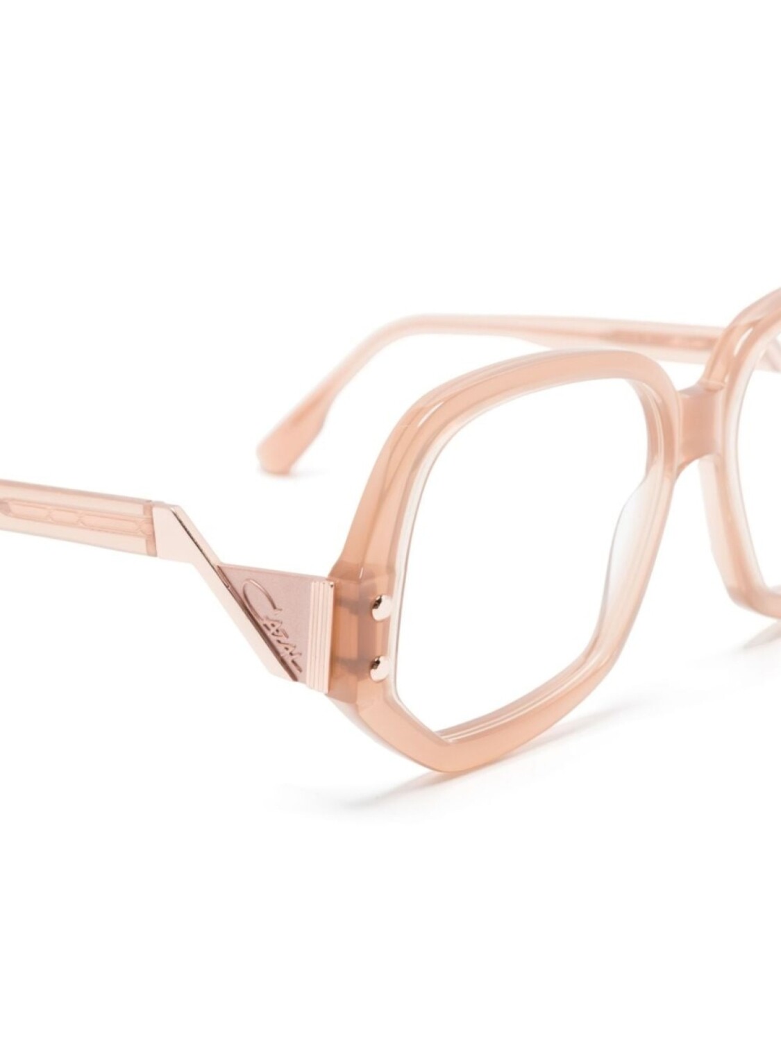 Светло-розовый, ацетат/акриловое стекло, прозрачный материал, оправа геометрической формы, прозрачные линзы, фурнитура цвета розового золота, тисненый логотип на дужке, скульптурные дужки, дужки с закругленными концами, Обратите внимание, что на FARFETCH продаются оправы с линзами без диоптрий.