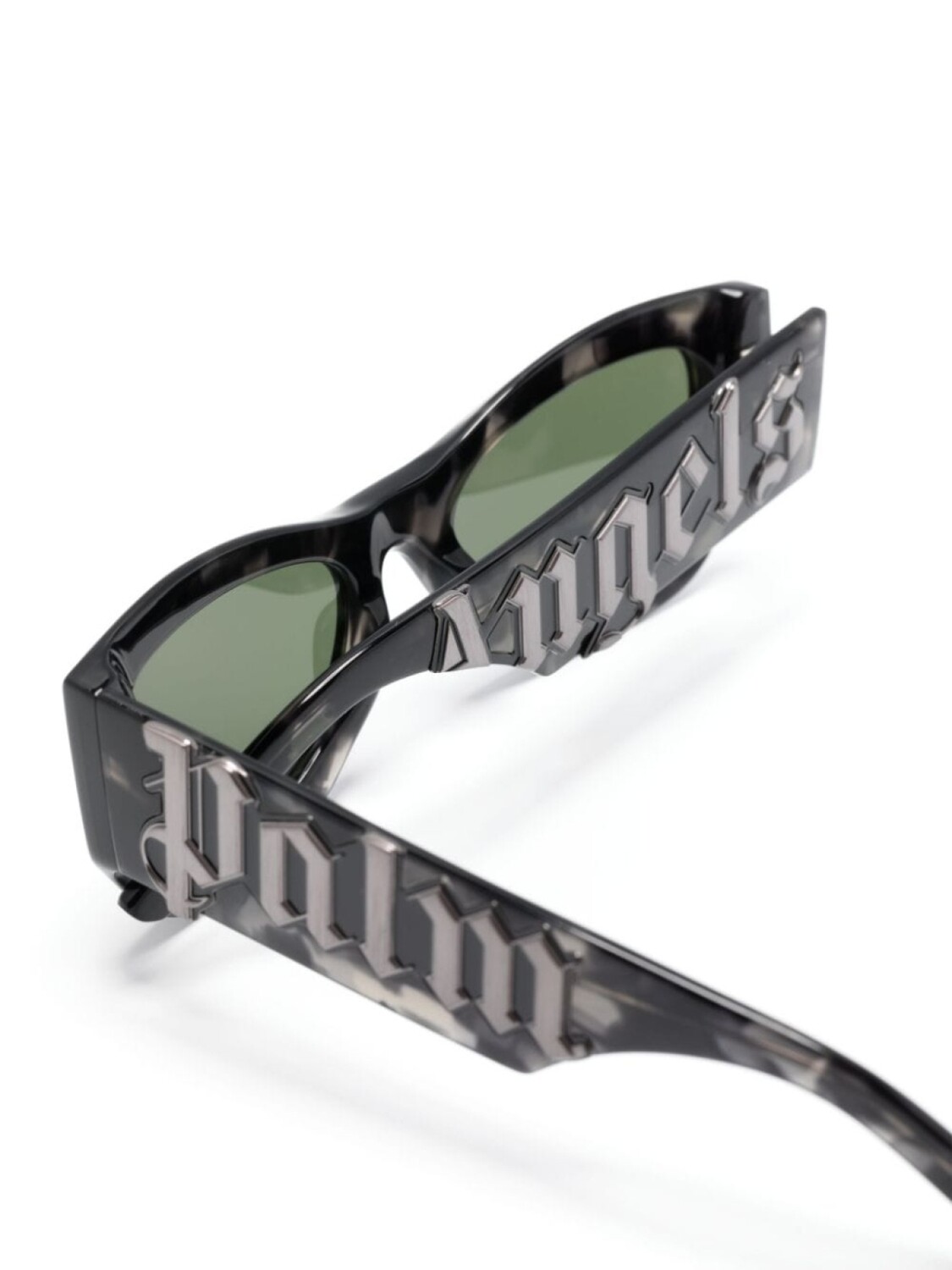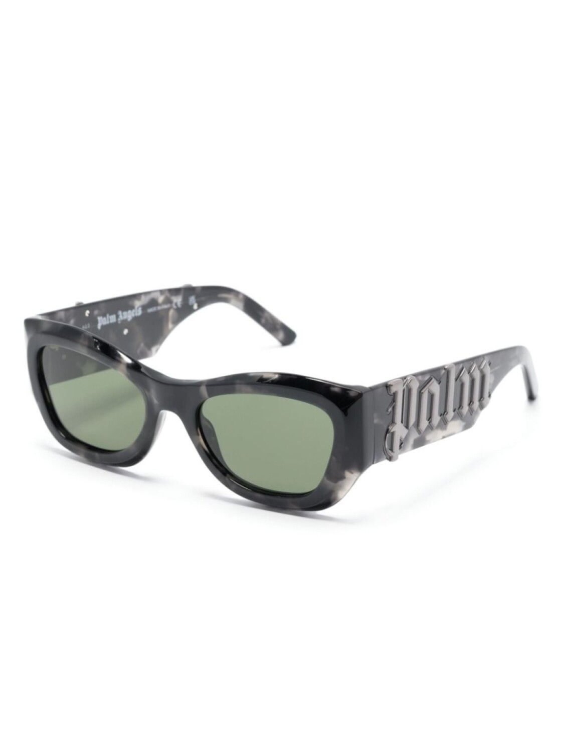 Черный, ацетат, черепаховая расцветка, серебристый логотип, квадратная оправа, затемненные линзы зеленого цвета, линзы с защитой от ультрафиолета, прямые дужки и дужки с закругленными концами. В комплект входит защитный чехол для очков.
