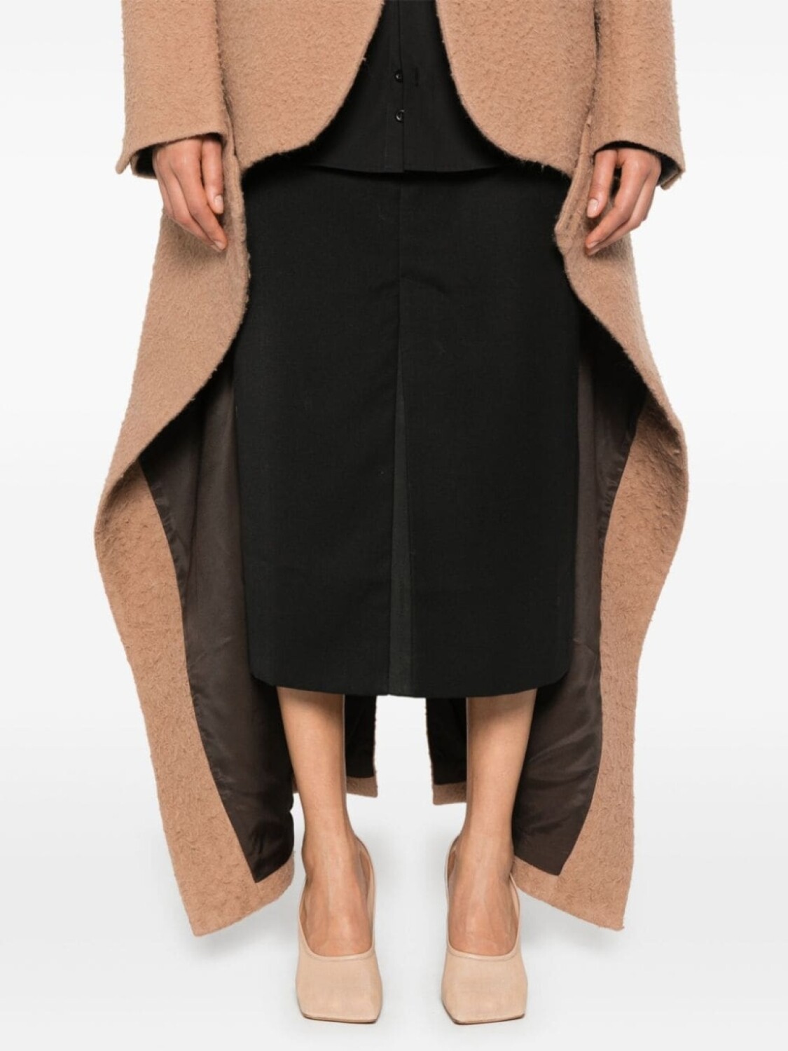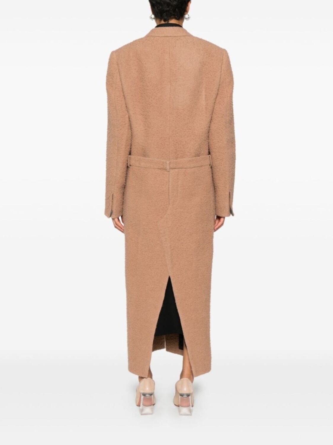 Подробнее о товаре: • бежево-коричневый • смесь шерсти альпаки и шелка • матовый эффект • эффект потертости • защипы • зазубренные лацканы • подплечники • длинные рукава с разрезами на манжетах • прорезной карман на груди • два прорезных кармана на пуговицах спереди • внутренние прорезные карманы • подкладка из хлопка • застежка на пуговицах спереди • Съемная вставка • петли для ремня • шлица по центру сзади • прямой подол