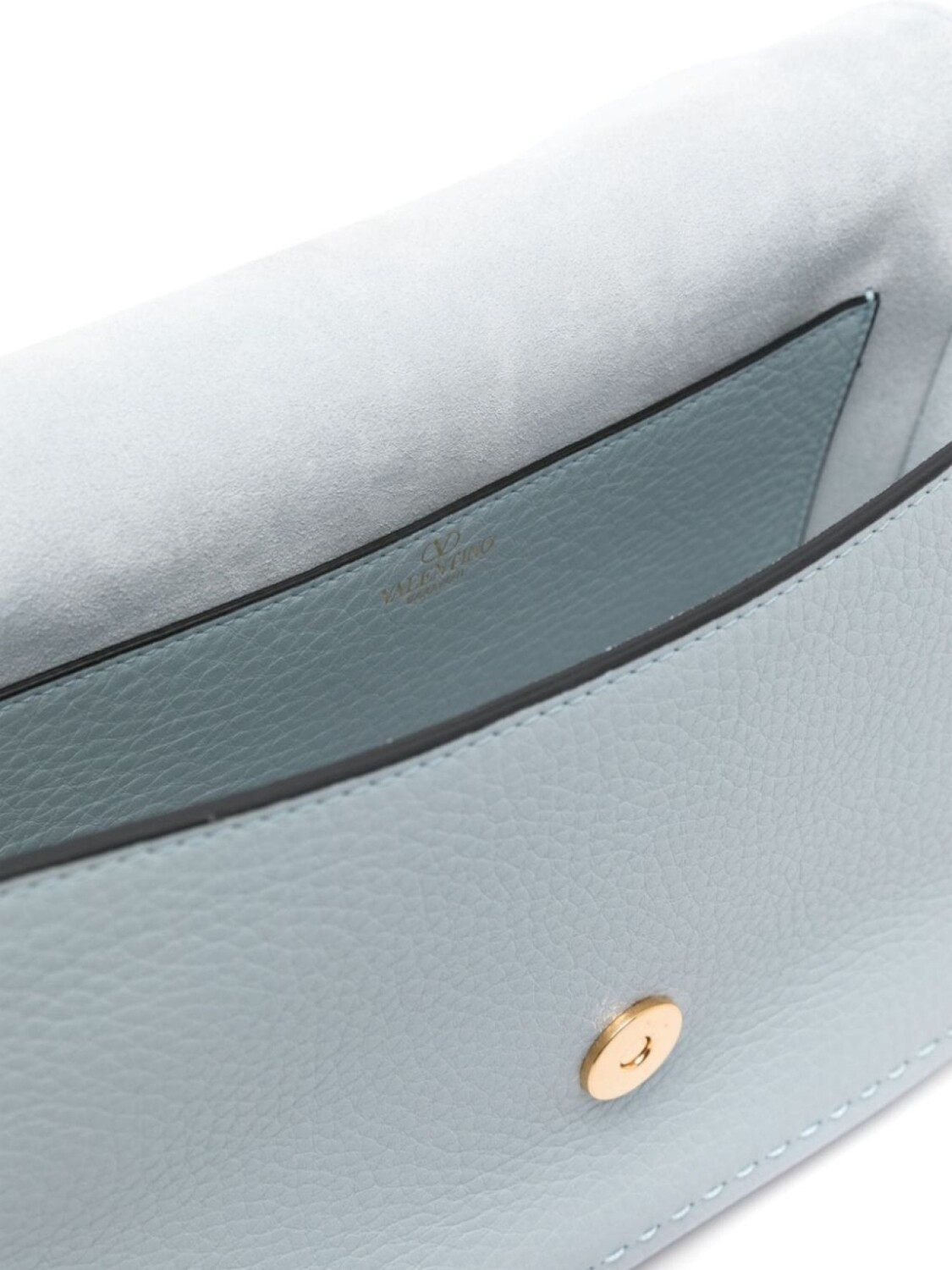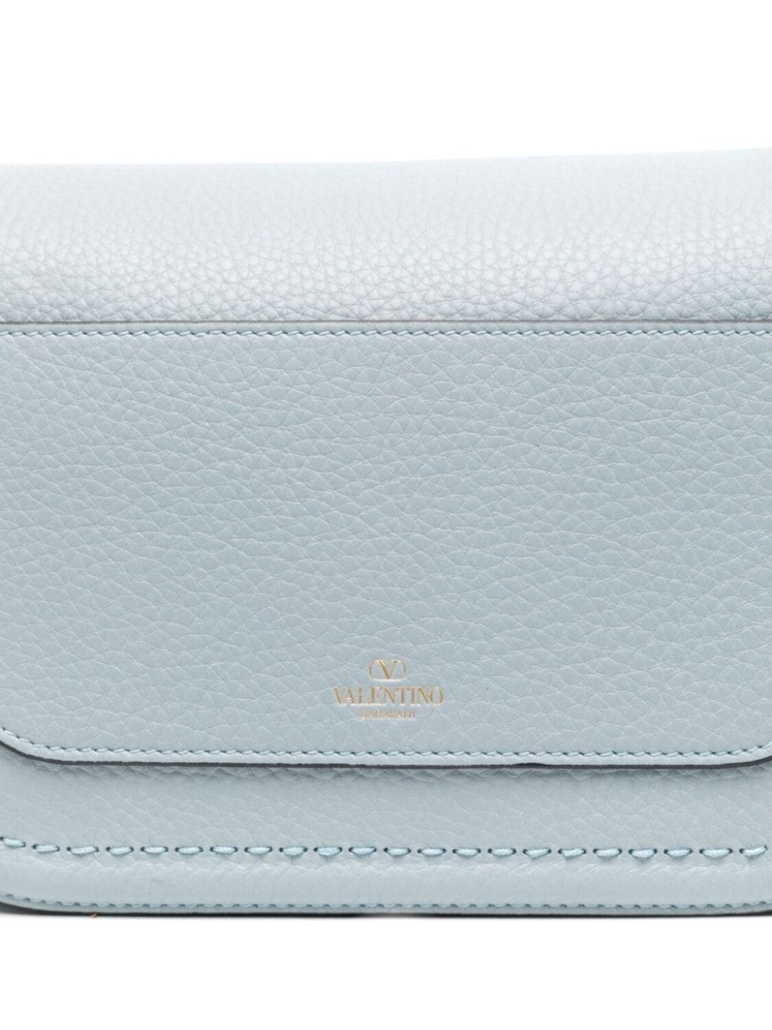 Голубой, телячья кожа, зернистая текстура, съемная верхняя ручка, съемный регулируемый ремень на плечо, декор VLogo Signature, накладной карман сзади, основное отделение, внутренний накладной карман, тисненый логотип внутри, замшевая подкладка, откидной верх на магнитной застежке, В комплект входит мешок-пыльник для хранения.