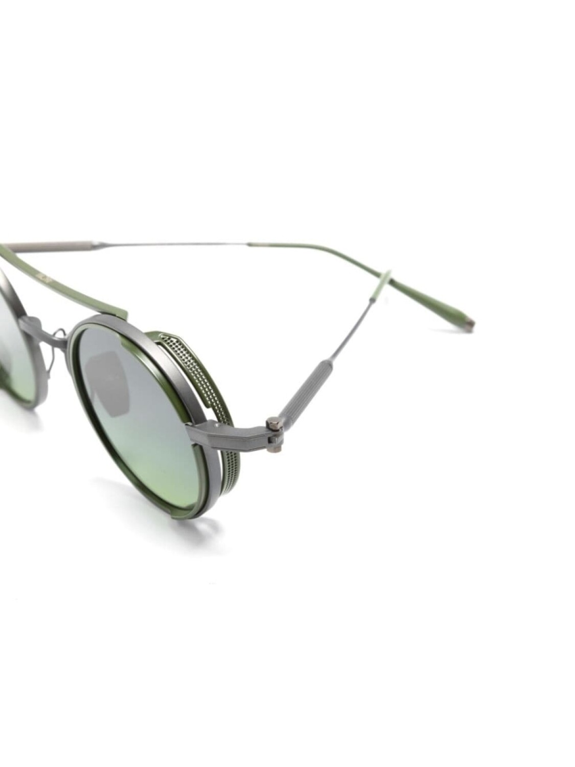 Двойной мост, градиентные линзы, дужки с закругленными концами, серебристый, круглая оправа, скульптурные дужки, титан, оливково-зеленый, носоупоры, В комплект входит защитный чехол для очков.