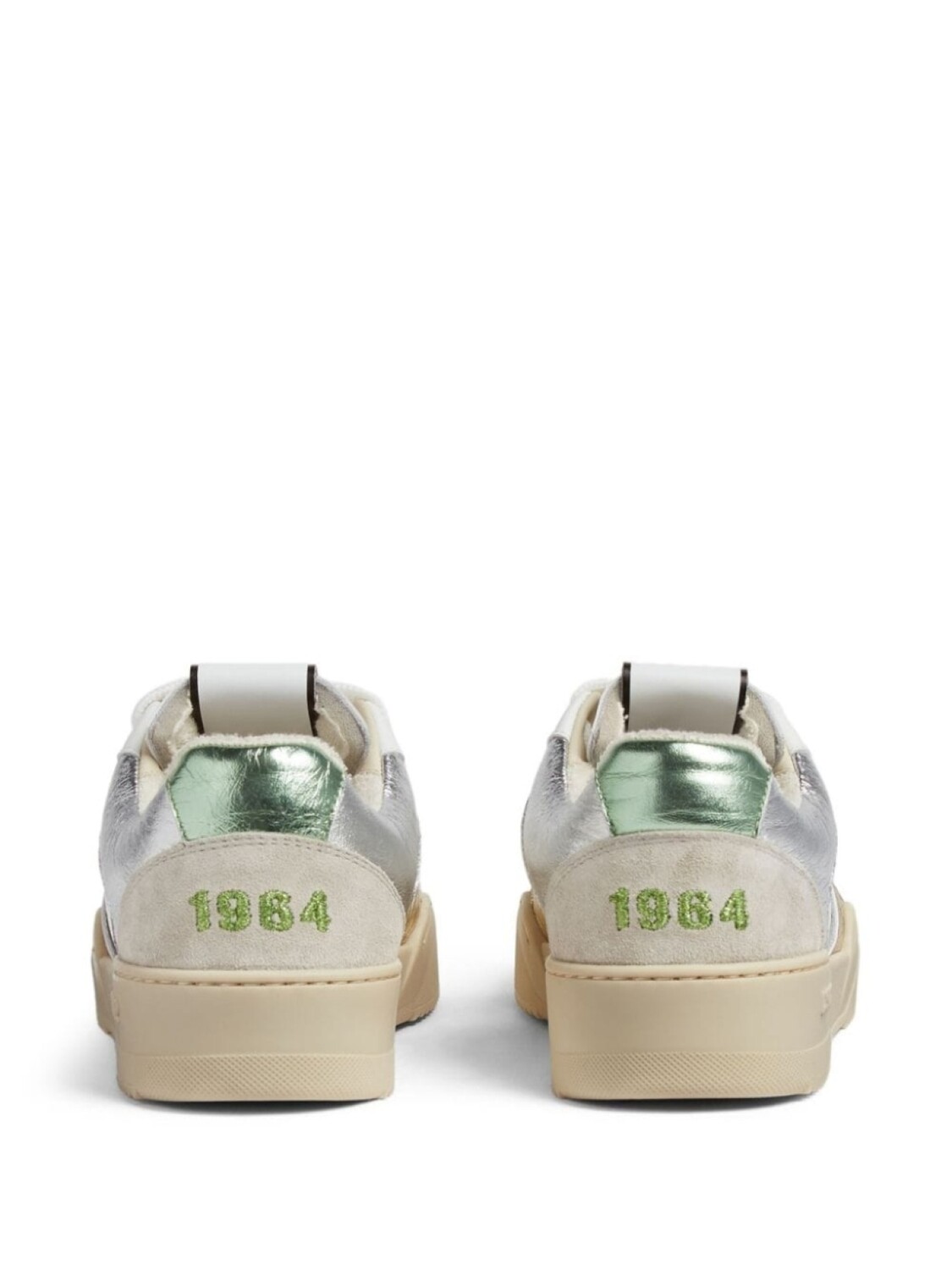 Белый, телячья кожа, контрастные вставки, вышитый узор, закругленный носок, шнуровка спереди, нашивка с логотипом на язычке, стелька с логотипом, резиновая подошва