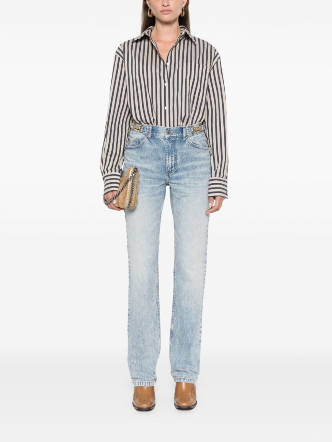 Синий, хлопок, деним, эффект потертости, средняя посадка, петли для ремня, декор в виде зажимов, классическая пятикарманная модель, вышитый логотип сбоку, нашивка с логотипом сзади, зауженный крой, застежка на молнии и пуговице спереди, Мы сотрудничаем с Good On You — независимым агентством, которое оценивает бренды по отношению к их влиянию на планету, людей и животных. Для того, чтобы получить нашу отметку Conscious, крупные бренды должны набрать минимум четыре балла из пяти (Хорошо), а небольшие бренды — не менее трех из пяти (Начало положено)., Этот товар принадлежит бренду, получившему оценку четыре из пяти (Хорошо) по версии Good on You на момент добавления в FARFETCH. Обратите внимание, что оценка распространяется на бренд в целом и не гарантирует, что товар состоит из экологичных материалов., Узнать больше о том, какие товары получают отметку «Ответственный выбор», можно здесь.