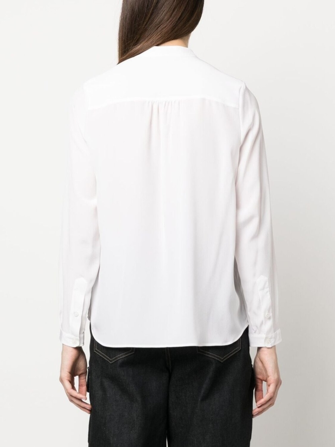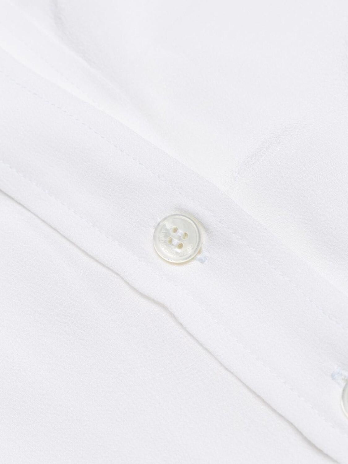 Рубашка без воротника от Stella McCartney (Стелла Маккартни). Модель без воротника, застежка на пуговицах спереди, длинные рукава, манжеты на пуговицах и закругленный подол. Цвет: белый. POSITIVELY CONSCIOUS: Мы объединились с агентством Good On You, которое составляет рейтинг ответственных брендов. Этот бренд получил отметку «Ответственный выбор», потому что отвечает ключевым стандартам агентства.