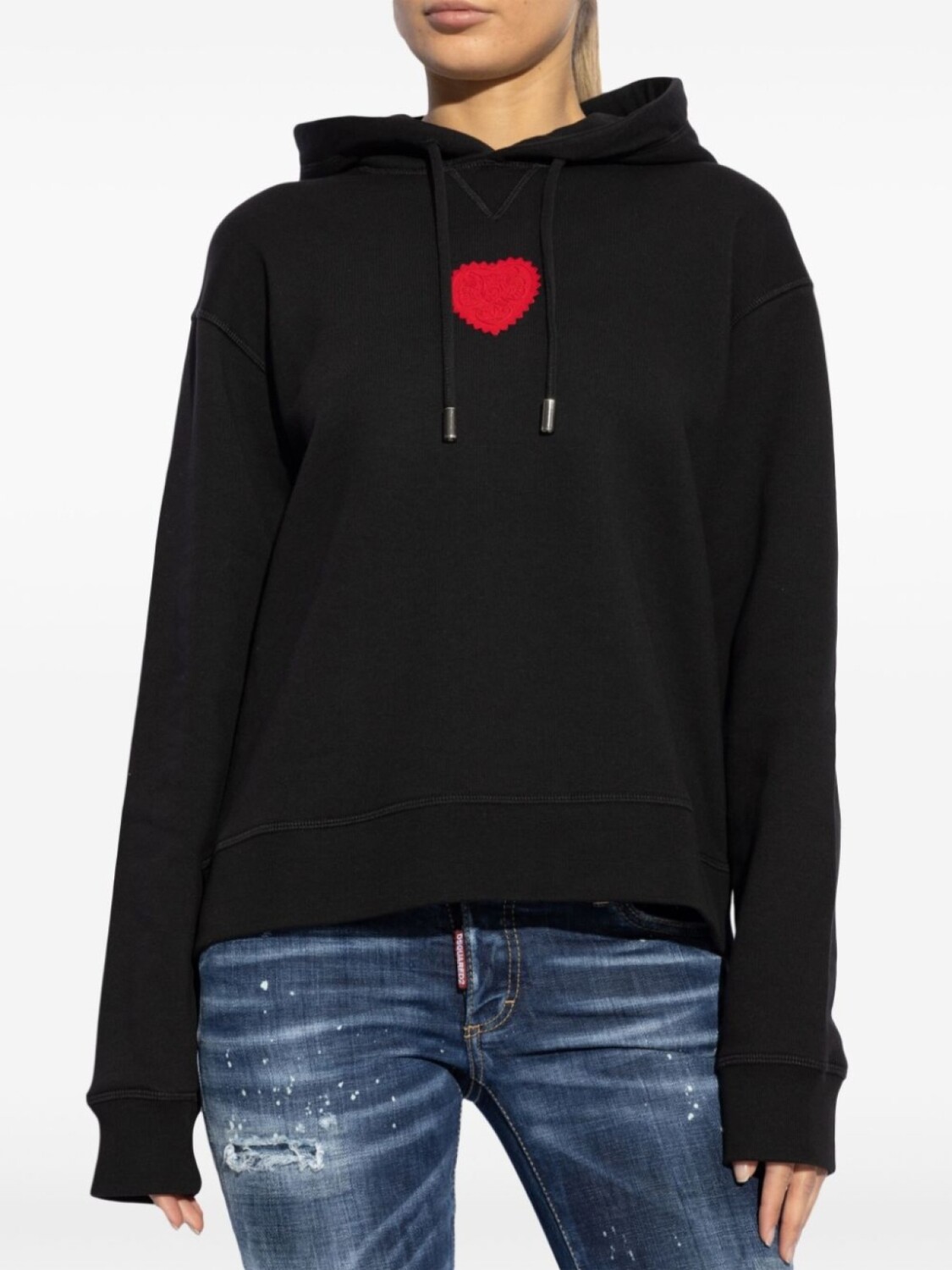 Dsquared2 толстовка с капюшоном из хлопка с нашивкой в виде сердца, черный