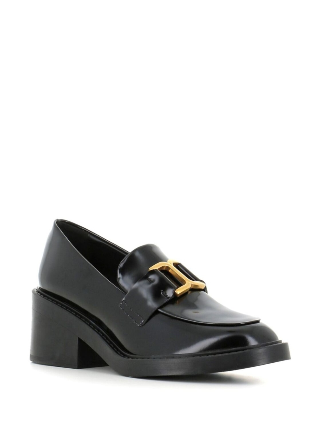 Туфли из черной телячьей кожи с логотипом и пряжкой, миндалевидный носок, каблук средней высоты 60 мм