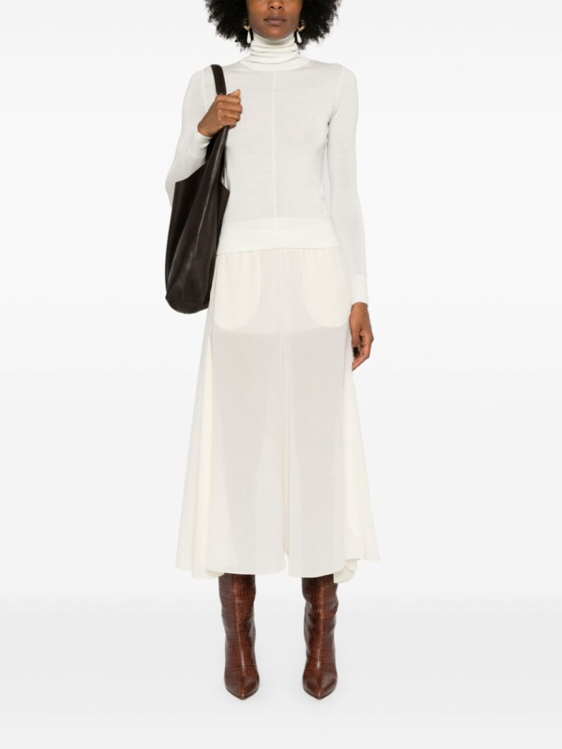 Chloé джемпер с высоким воротником и вышитым логотипом, белый