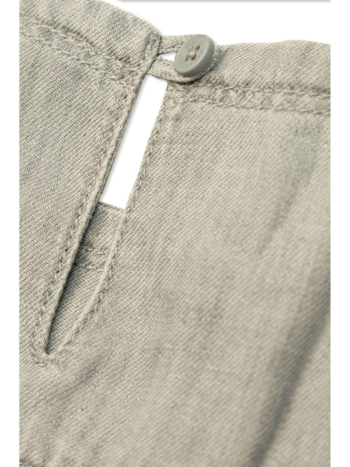 Зеленый хлопковый деним застежка на одну пуговицу сзади вышитый рисунок длинные рукава эластичные манжеты прямой подол