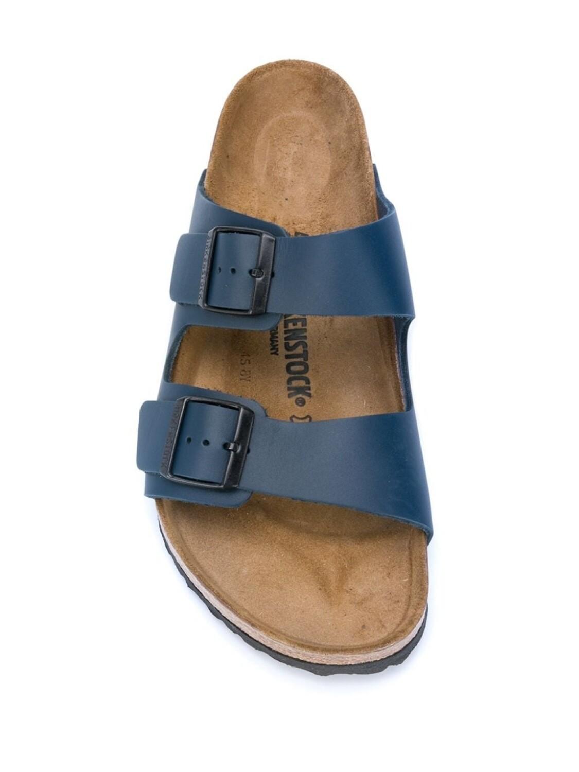 Сандалии Arizona от Birkenstock. Открытый носок, модель слип-он, без застежки, фирменная стелька, застежки по бокам на пряжке и плоская подошва.